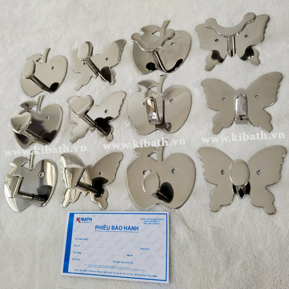 Móc treo đồ nhà tắm 100% Inox đặc PHÁT ĐẠT, Móc áo đơn inox hình con bướm, giá treo inox (SP022)