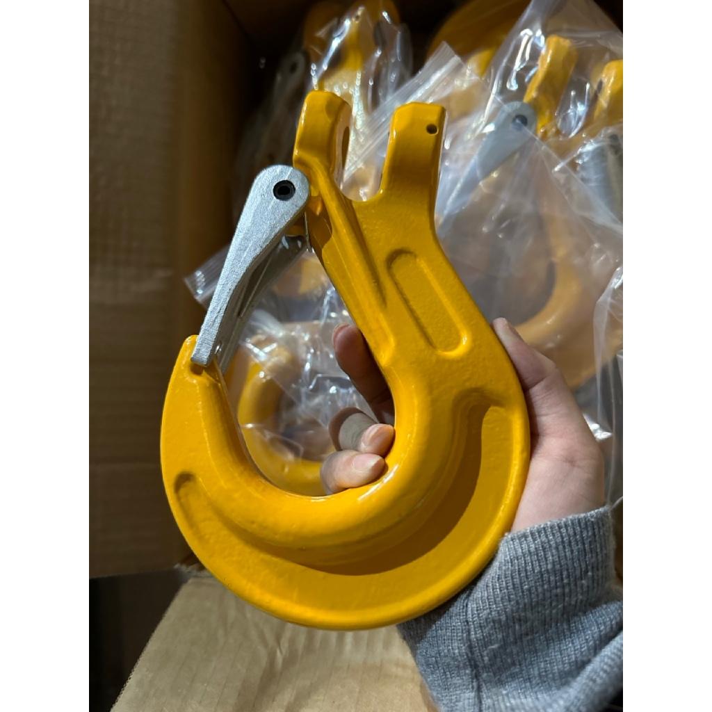 Bên cạnh chốt ngang cố định, móc còn có chốt an toàn (lưỡi gà) ở miệng để ngăn dây hoặc vật cẩu bị tuột ra ngoài, đảm bảo an toàn tối đa trong quá trình làm việc.