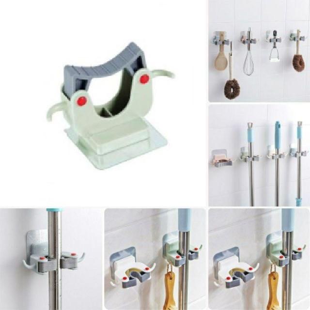 Móc Treo Cây Lau Nhà Thông Minh, Giá Kẹp Treo Chổi Cây Lau Nhà Dính Tường Không Phải Khoan