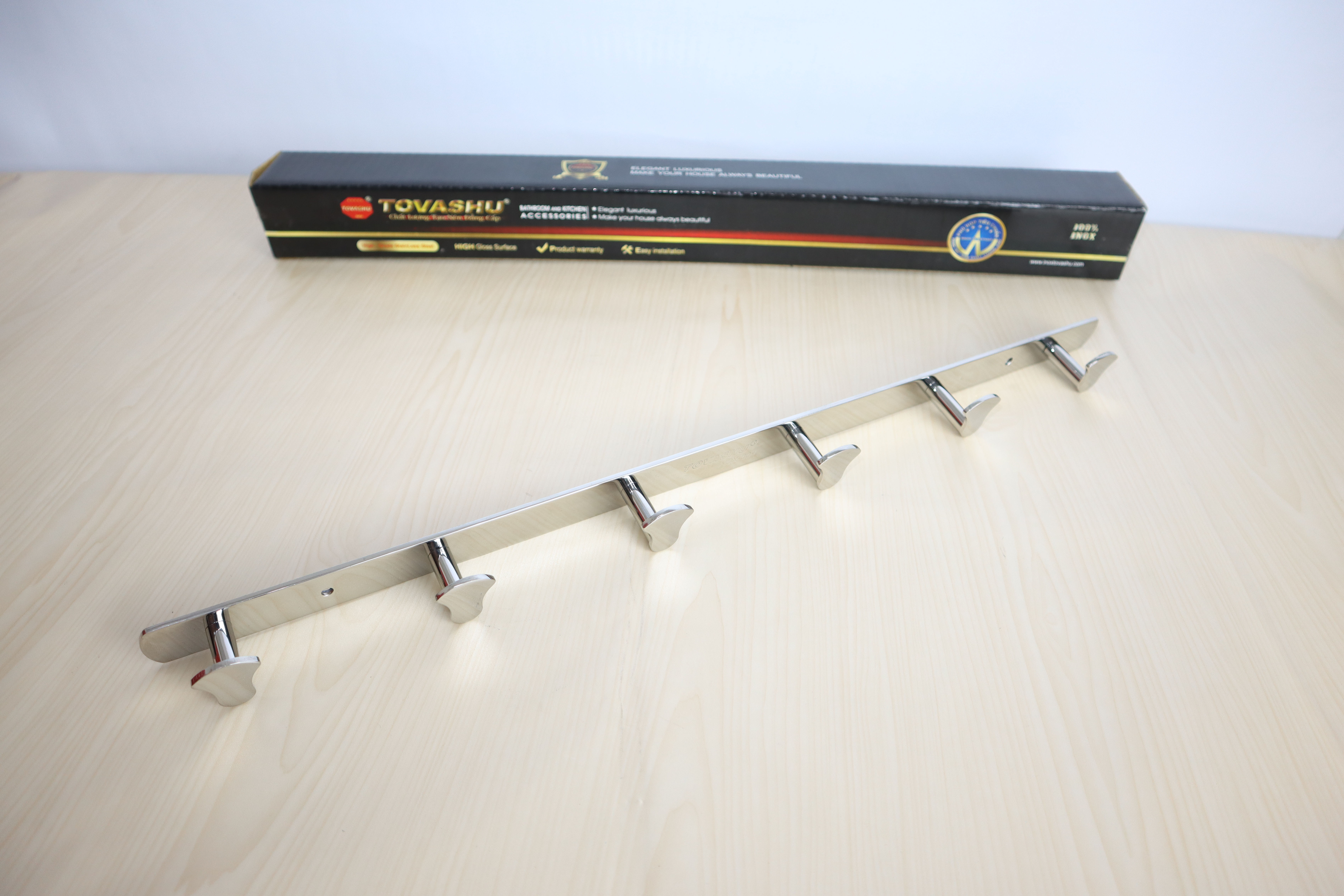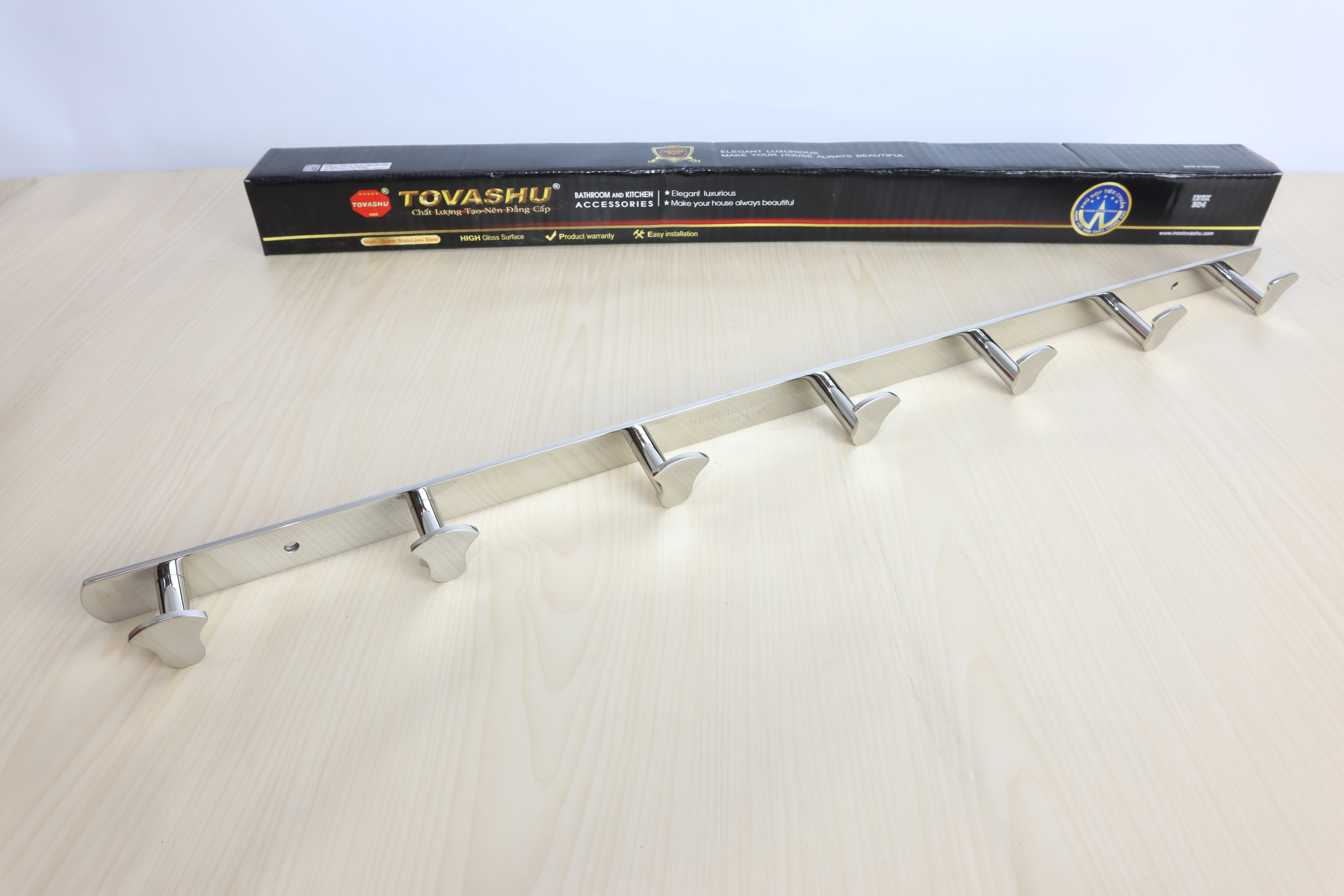 Móc treo đồ nhà tắm Inox 304 PHÁT ĐẠT (5,6,7 móc), giá treo inox cao cấp, Móc áo vầng trăng (SP003)