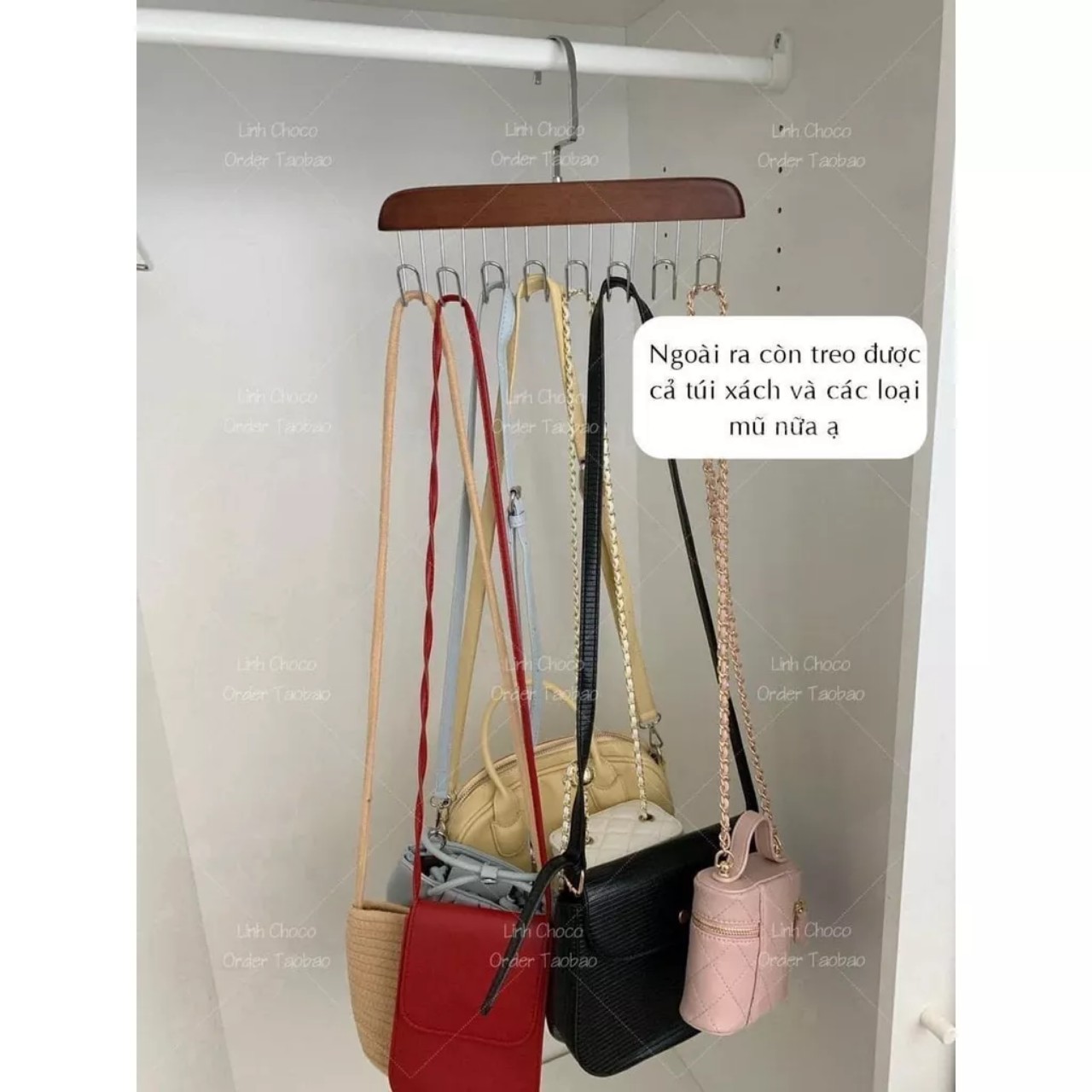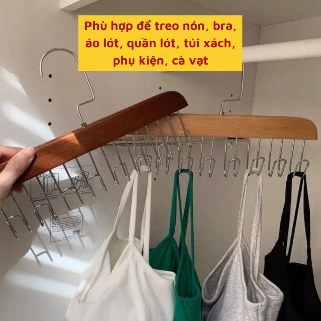 Móc Treo Áo 2 Dây Bra Đa Năng Tiện Lợi Giá Treo 8 Mắc Bằng Gỗ Treo Áo Lót Cà Vạt Thắt Lưng Túi Xách Gọn Tủ Quần Áo- HÀNG CHÍNH HÃNG MINIIN