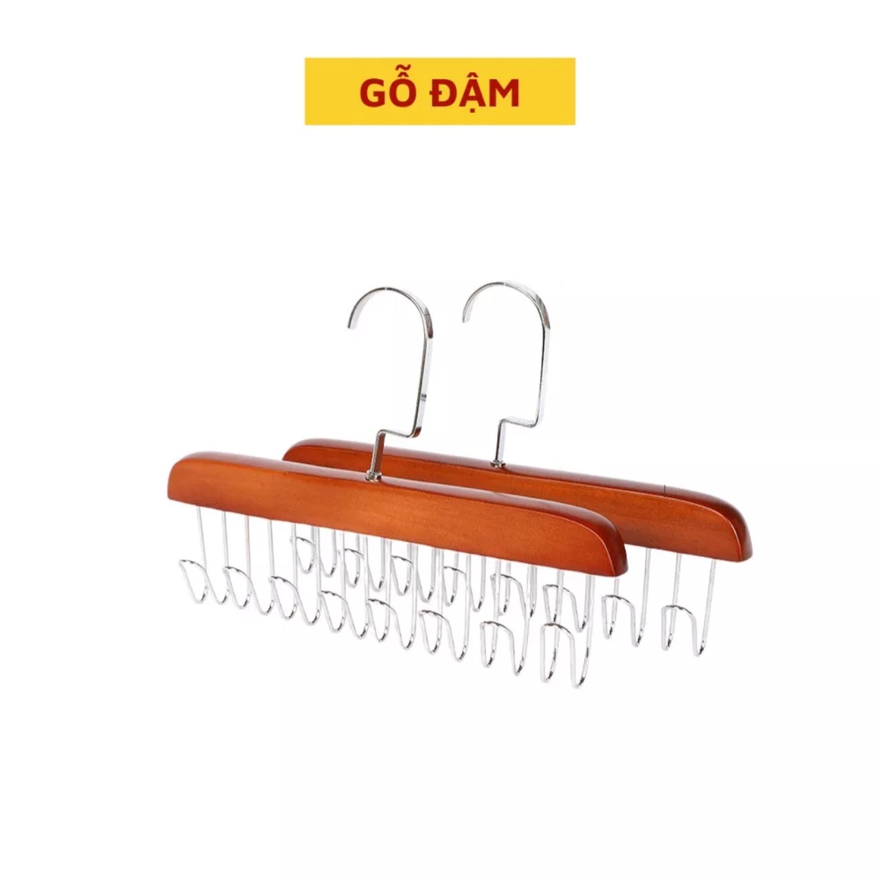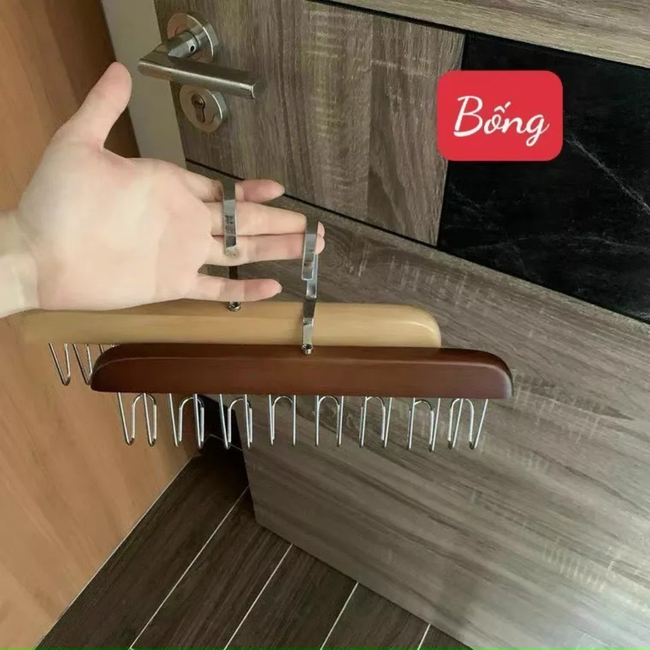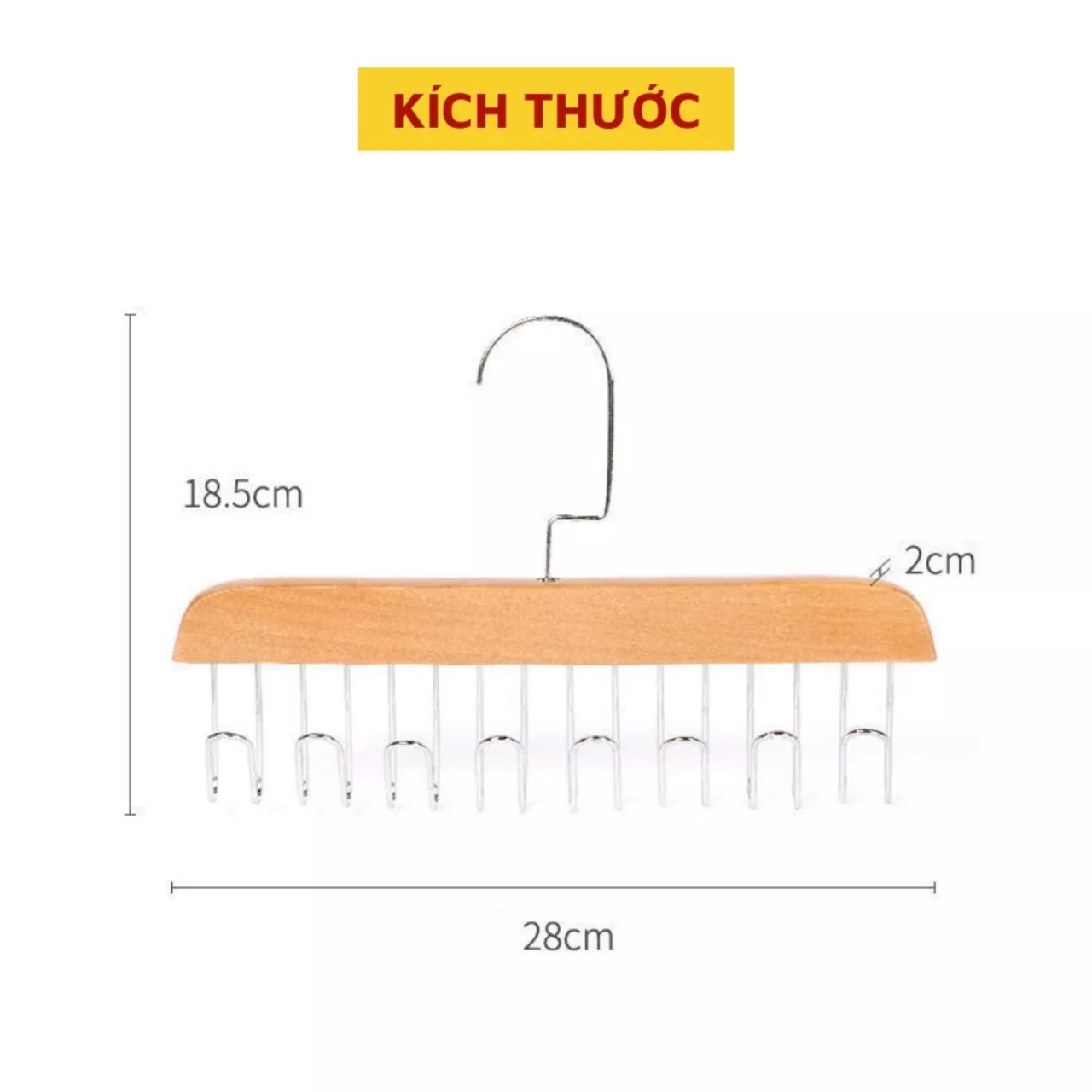 Móc Gỗ Treo Đồ Lót, Thắt Lưng, Cà Vạt- Móc Treo Áo 2 Dây, Mũ, Khăn Đa Năng - Chất liệu: kim loại + móc treo cà vạt gỗ - Kích thước 8 móc: 28