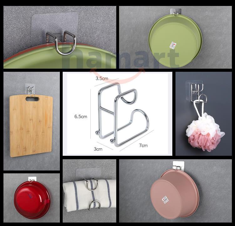 Móc Inox, Treo Thau, Treo Chậu Dán Tường Nhà Tắm , Treo Đồ Đa Năng, Không Khoan Đục, Tiện Dụng