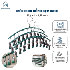 Móc Treo Đồ Lót Khăn Tất 10 Kẹp Inox, Móc Kẹp Phơi Quần Ao Đa Năng Tiết Kiệm Diện Tích, Chất Liệu Không Gỉ - HÀNG CHÍNH HÃNG MINIIN