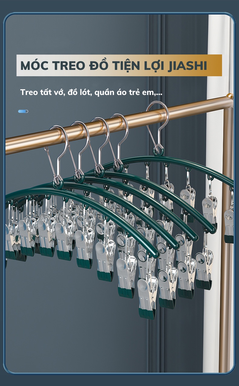 Thông tin sản phẩm: Móc Treo Đồ Lót Khăn Tất 10 Kẹp Inox, Móc Kẹp Phơi Quần Ao Đa Năng Tiết Kiệm Diện Tích, Chất Liệu Không Gỉ