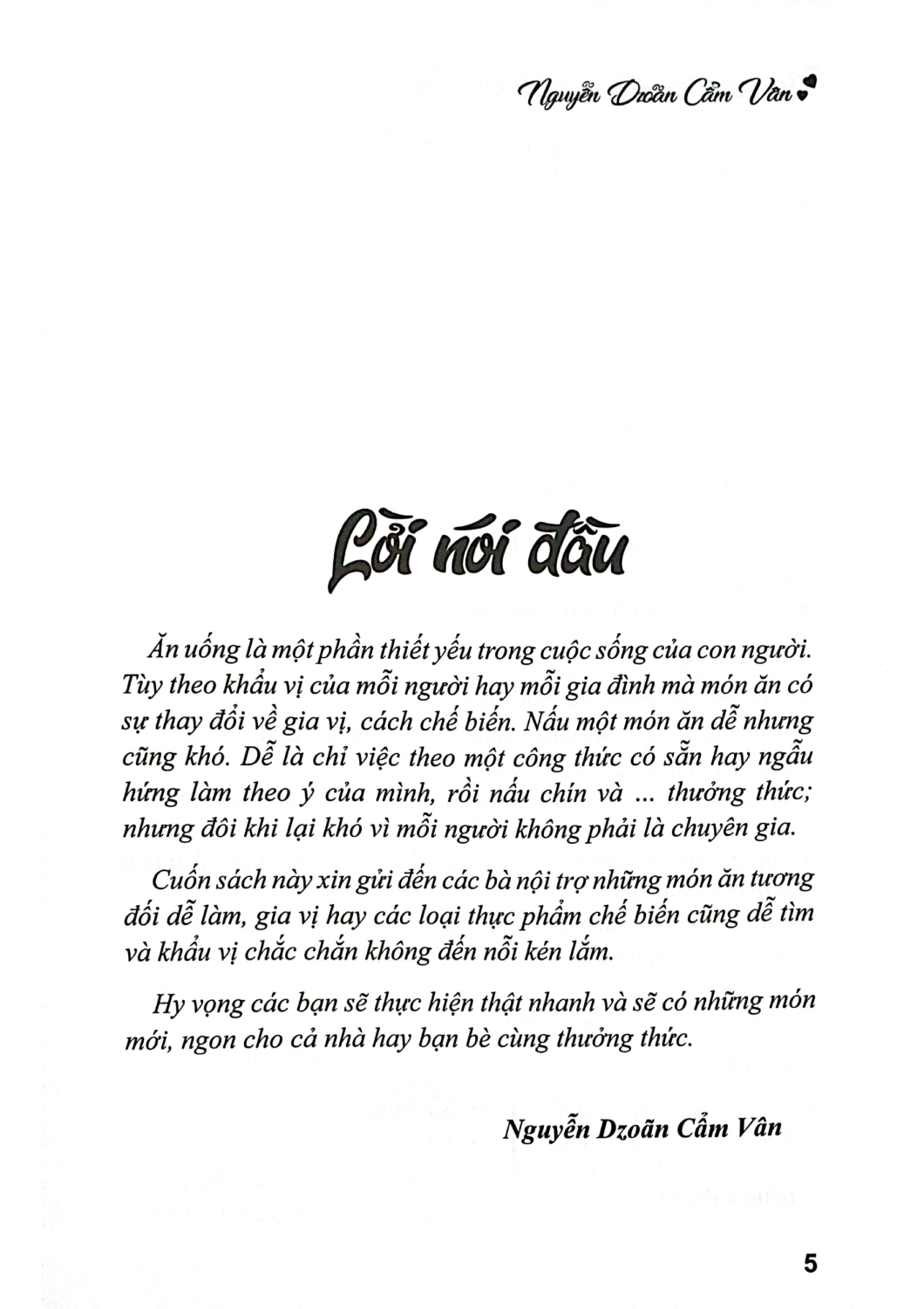 Món Ăn Dân Dã Cuốn sách giói thiệu công thức chế biến những món ăn đơn giản nhưng ngon miệng, để độc giả có thể thay đổi thực đơn hàng ngày, làm phong phú thêm