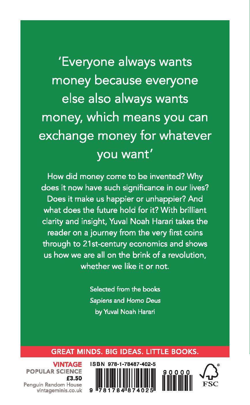 How did money come to be invented? Why does it now have such significance in our lives? Does it make us happier or unhappier? And what does the future hold for it? With brilliant clarity and insight, Yuval Noah Harari takes the reader on a journey from the very first coins through to 21st century economics and shows us how we are all on the brink of a revolution, whether we like it or not.