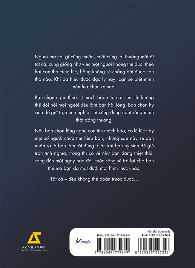 Đó là những lời nhắn gửi chân thành và tinh túy được đúc rút từ cuốn sách mới nhất của Vãn Tình – Một đời được mất. Đây là cuốn sách thứ chín của cô xuất bản tại thị trường Việt Nam bởi thương hiệu Bloom Books, đánh dấu son rực rỡ trên hành trình phấn đấu và trưởng thành của nữ tác giả đầu sách best seller Bạn đắt giá bao nhiêu? và Khí chất bao nhiêu, hạnh phúc bấy nhiêu.