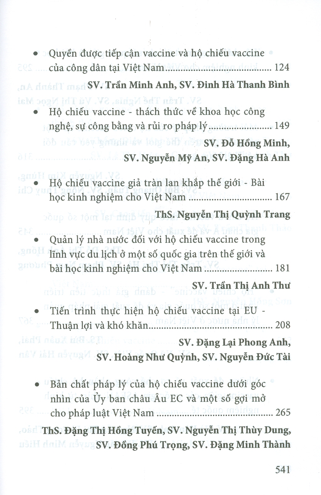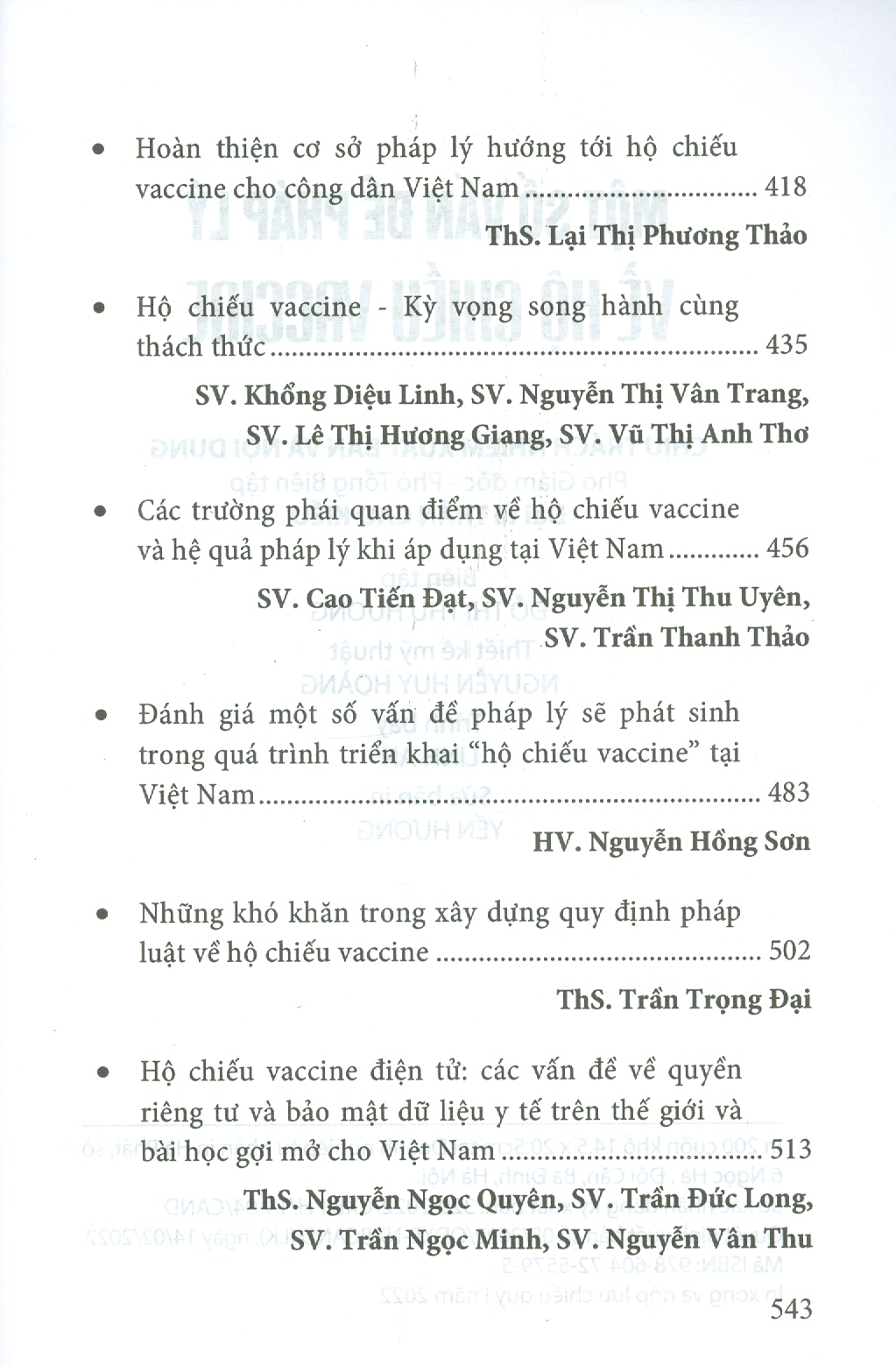 Mua tại TiktokSách gồm 23 bài nghiên cứu, trong đó có nhiều kiến nghị nhằm hoàn thiện khung pháp lý cho Việt Nam về hộ chiếu vaccine.