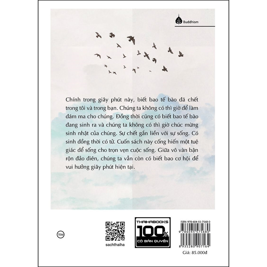 Chính trong giây phút này, biết bao tế bào đã chết trong tôi và trong bạn. Chúng ta không có thì giờ để làm đám ma cho chúng. Đồng thời cũng có biết bao tế bào đang sinh ra và chúng ta không có thì giờ chúc mừng sinh nhật của chúng. Sự chết gắn liền với sự sống. Có sinh đồng thời có tử. Cuốn sách này cống hiến một tuệ giác để sống cho trọn vẹn cuộc sống. Giữa vô vàn bận rộn đảo điên, chúng ta vẫn còn có biết bao cơ hội để vui hưởng giây phút hiện tại.”