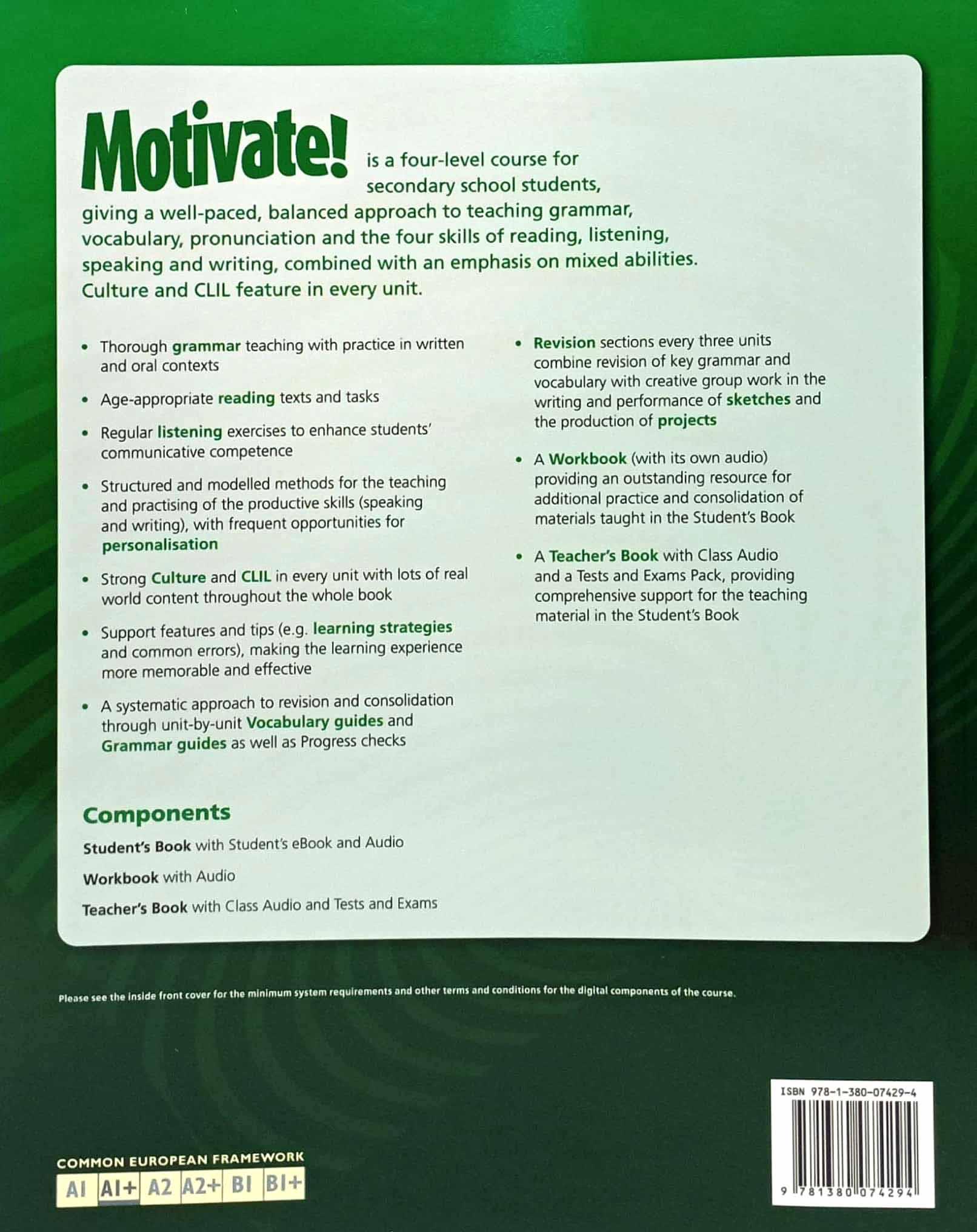 A 4-level course for secondary and for schools with fewer contact hours (2-3 per week). It starts at A1 and ends at B1.
