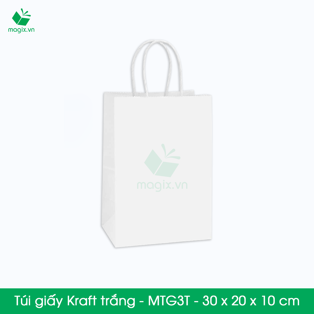 Túi Giấy Kraft Trắng Sản phẩm được làm bằng giấy kraft trắng, bền về cơ học, dai, chống thấm tốt, thân thiện môi trường do có khả năng phân hủy sinh học nên được tái sinh