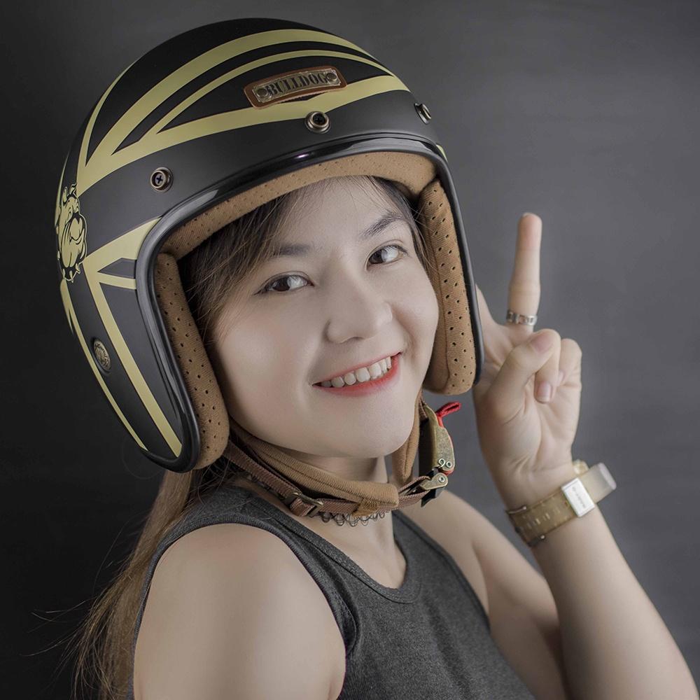 Mũ bảo hiểm 3/4 Bulldog Heli Fiberglass Mũ bảo hiểm 3/4 Bulldog Heli Fiberglass đậm chất cổ điển và được trau chuốt tỉ mỉ đến từng chi tiết, đặc biệt chất liệu sợi thủy tinh