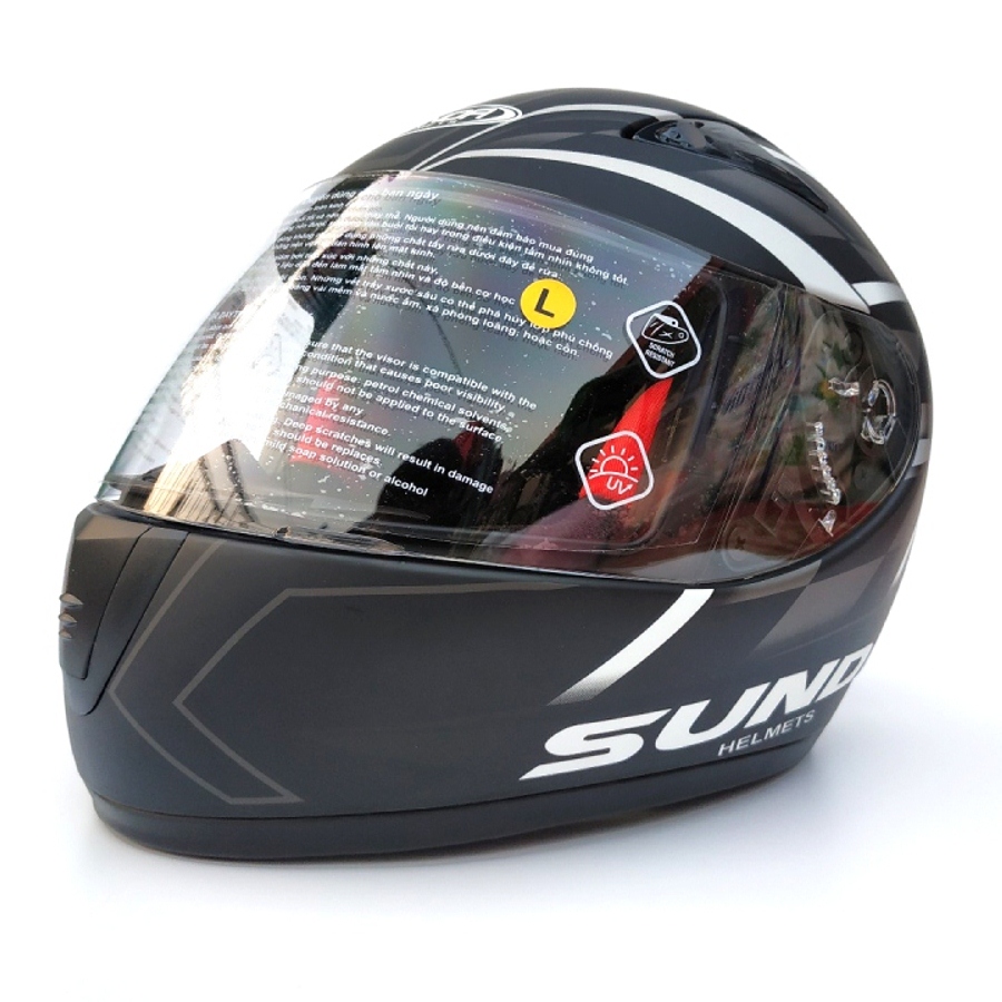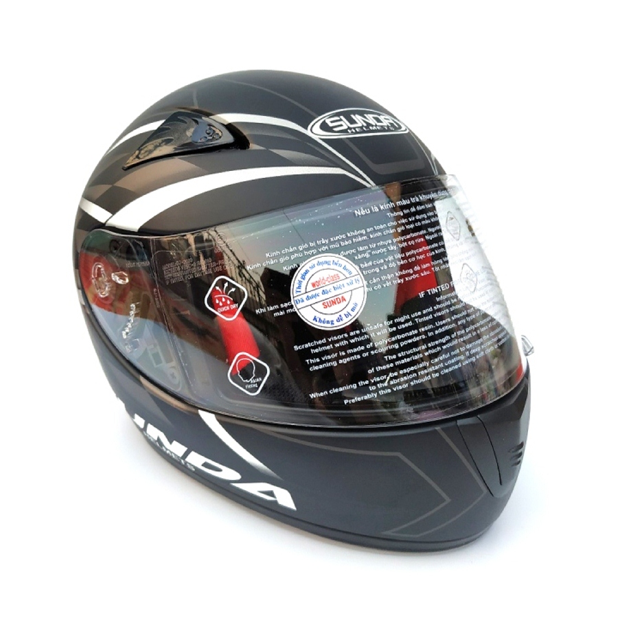 ✨Mũ bảo hiểm fullface chính hãng Sunda 2000c đen nhám sọc trắng