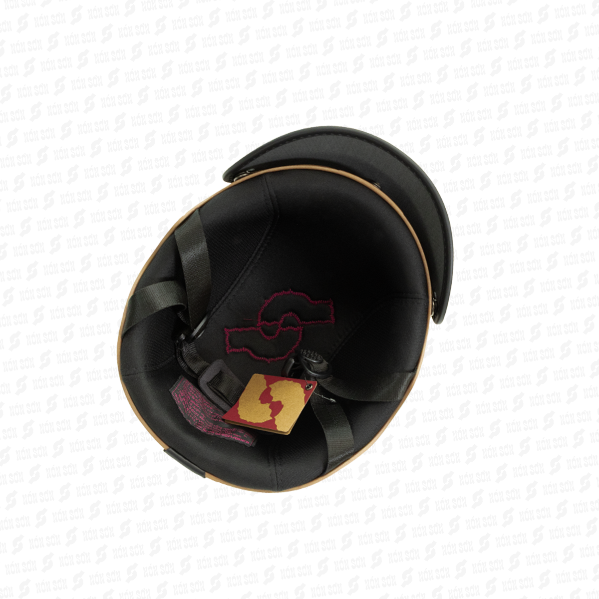 • Phần logo NÓN SƠN được gắn trên vỏ nón bảo hiểm Nón Sơn được làm từ da thật.