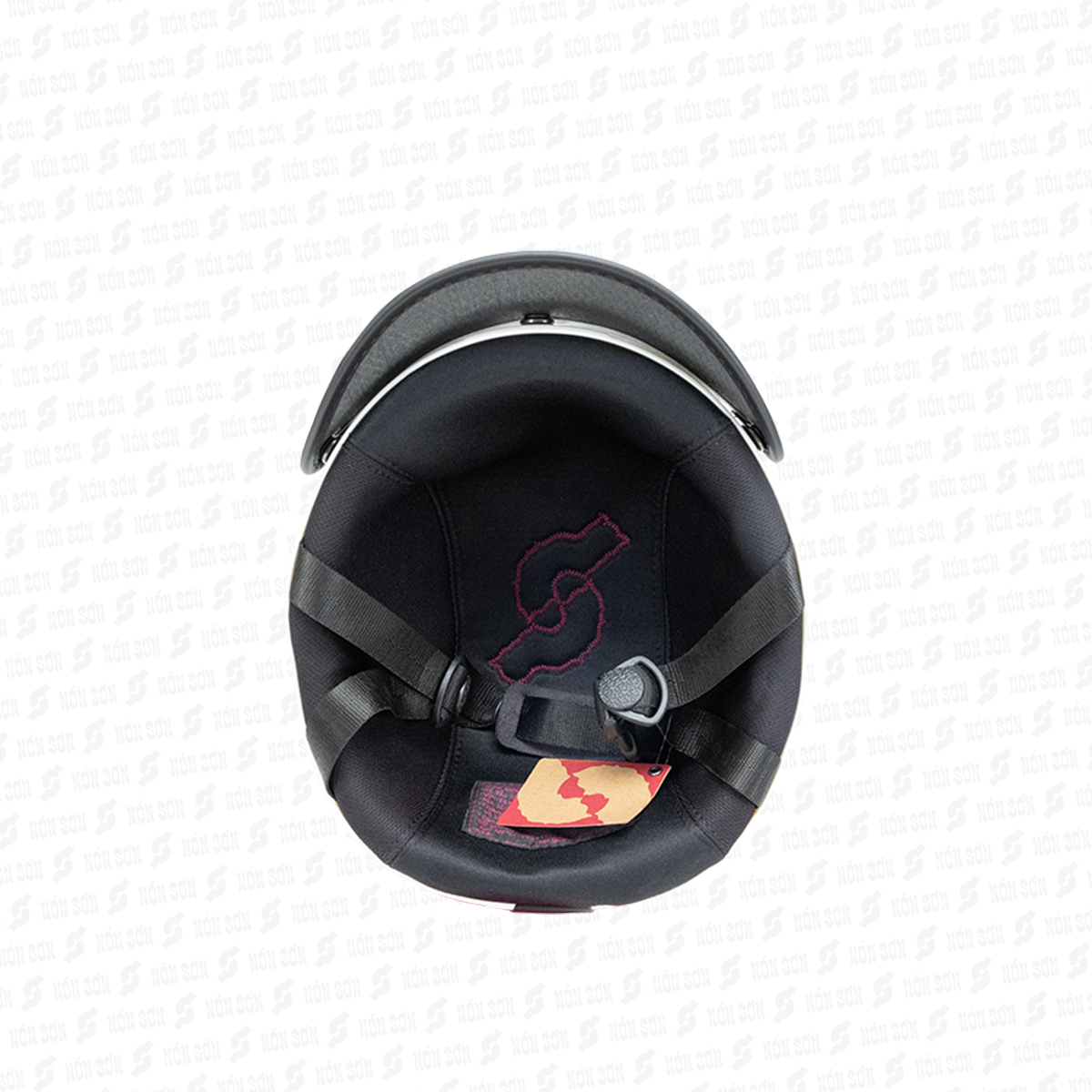 • Phần logo NÓN SƠN được gắn trên vỏ nón bảo hiểm Nón Sơn được làm từ da thật.