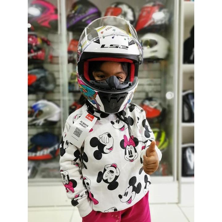 Mũ bảo hiểm fullface LS2 FF353 Rapid Mini đi đường dài cùng ba mẹ.Đây là những sản phẩm đầu tiên trên thị trường Việt Nam dành cho trẻ được sản xuất theo tiêu chuẩn an toàn Châu Âu ECE-2205.