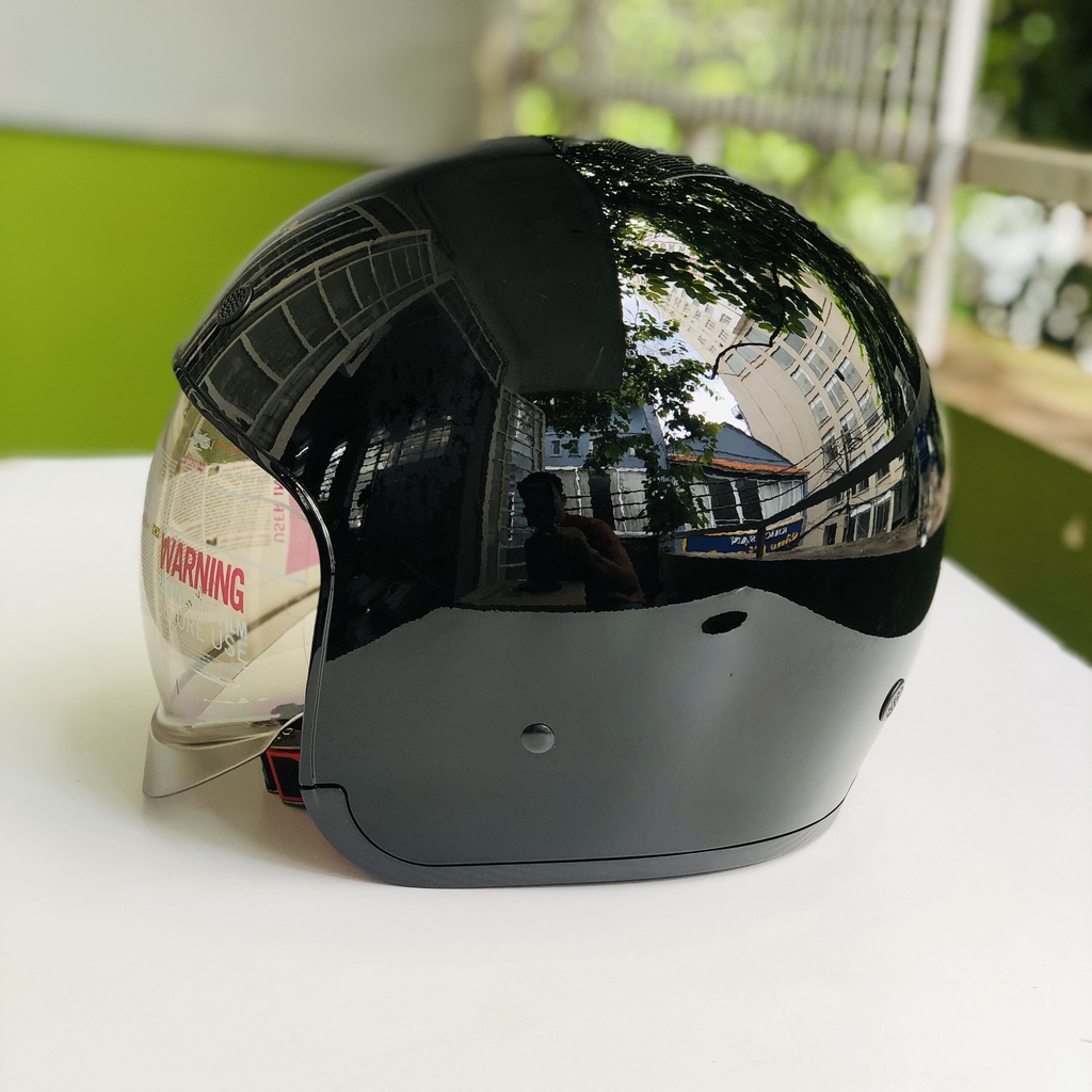 THIẾT KẾ THÔNG MINH - Phong cách thiết kế: mũ kiểu 3/4 kèm kính dài, mũ được thiết kế dáng tròn, đi kèm 2 miếng ốp má, giúp tăng thêm hiệu quả bao phủ, bảo