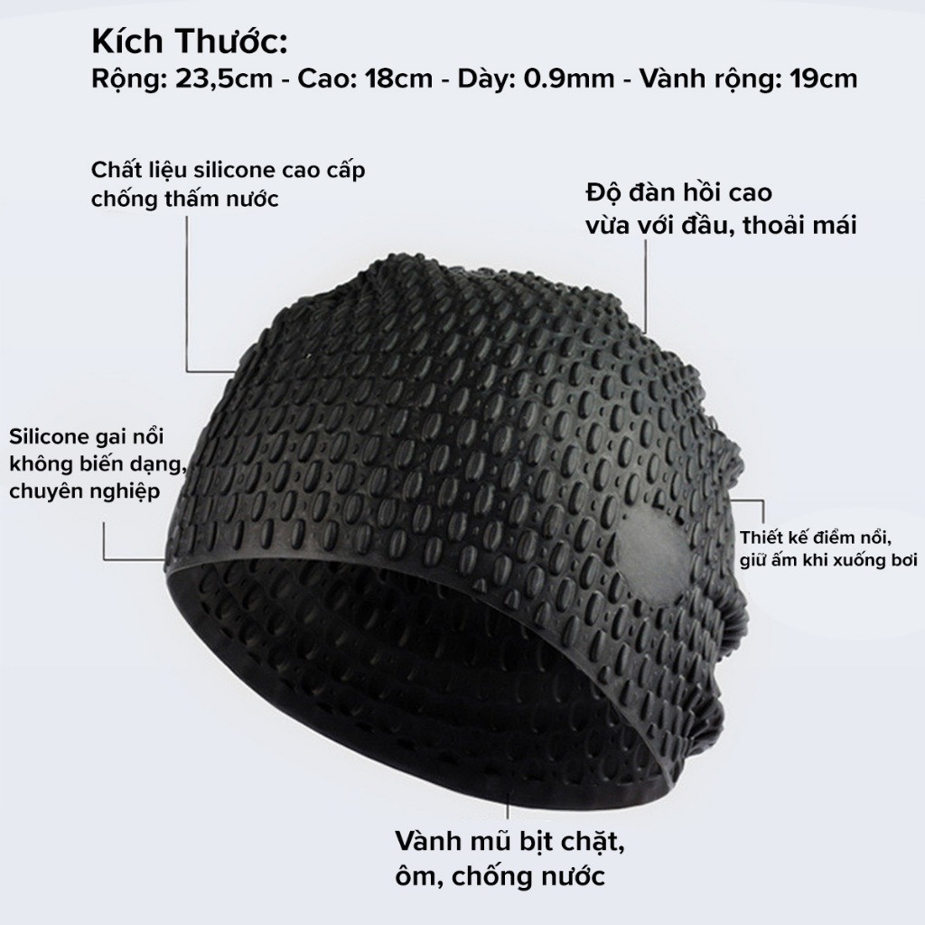 ✨Mũ Bơi Người Lớn, Trẻ Em Silicone Siêu Co Giãn – Chọn Màu, Siêu Bền, Siêu Mềm, Chống Thấm Nước Loại Có Gai - Hàng Chính Hãng dododios