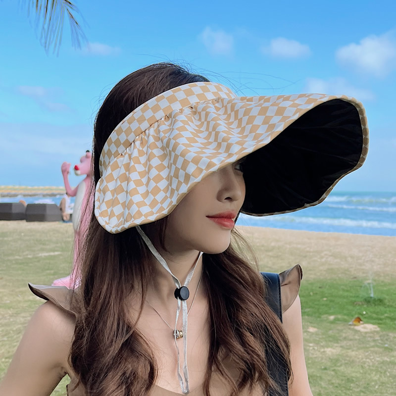 Nón mũ rộng vành đi biển chống nắng cho nữ phiên bản Hàn Quốc mới đi du lịch ngoài trời giải trí có thể gập lại chống tia cực tím Hàng nhập chất liệu vải