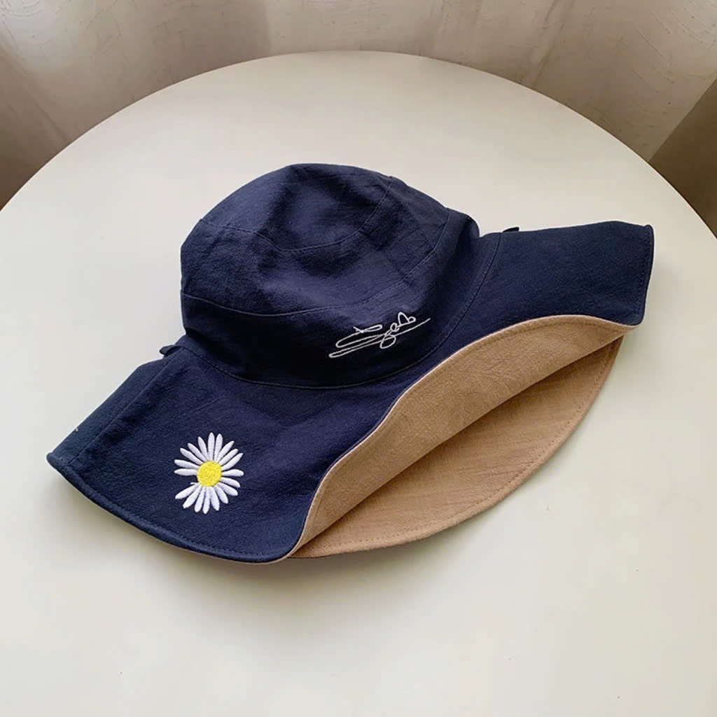Mũ Tai Bèo Rộng Vành Hai Mặt Chống Tia Uv Họa Tiết Hoa Cúc Nhiều Màu Có Dây Đeo Có Thể Gấp Gọn Cho Nữ