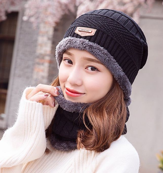 Mũ len kèm khăn ống quàng cổ cực ấm - phong cách Hàn Quốc