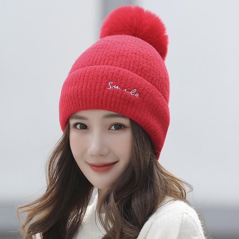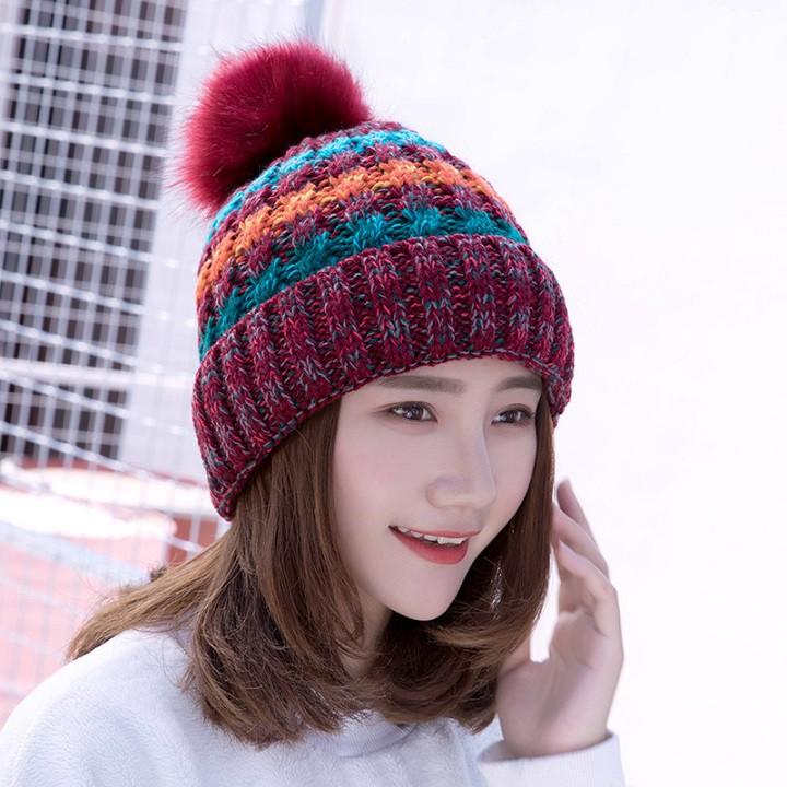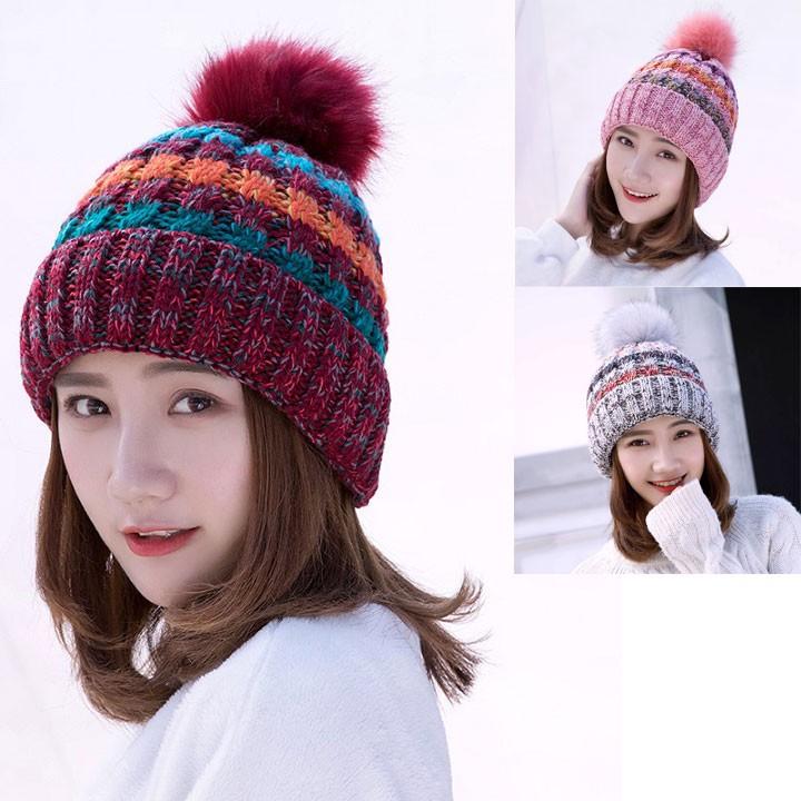 Mũ Len Nữ Lót Lông Mùa Đông Siêu Ấm