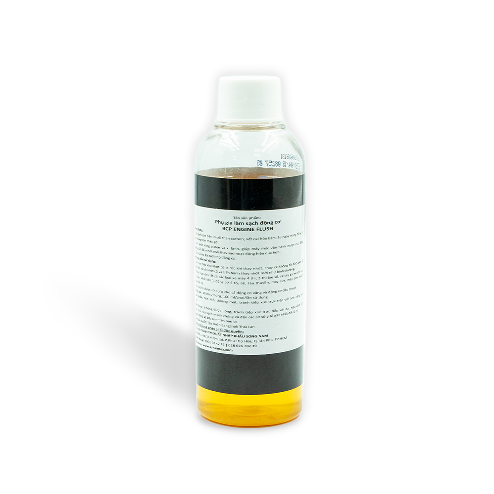 - Không chồng chất quá 6 Thùng lên nhau nhằm tránh biến dạng những chai ở lớp dưới cùng Dung dịch vệ sinh động cơ BCP Engine Flush 100 mL BCP Engine Flush là dung dịch làm sạch động cơ cao cấp được thiết kế để loại bỏ cặn bẩn, vết bám và cặn cacbon cho cả động cơ xăng và động cơ diesel, kể cả máy công nghiệp. Sản phẩm được sử dụng thường xuyên mỗi lần thay dầu nhớt. Dung dịch có công thức dầu gốc khoáng chất lượng cao kết hợp cùng chất tẩy rửa và phụ gia phân tán làm sạch hiệu quả. LỢI ÍCH SẢN PHẨM: