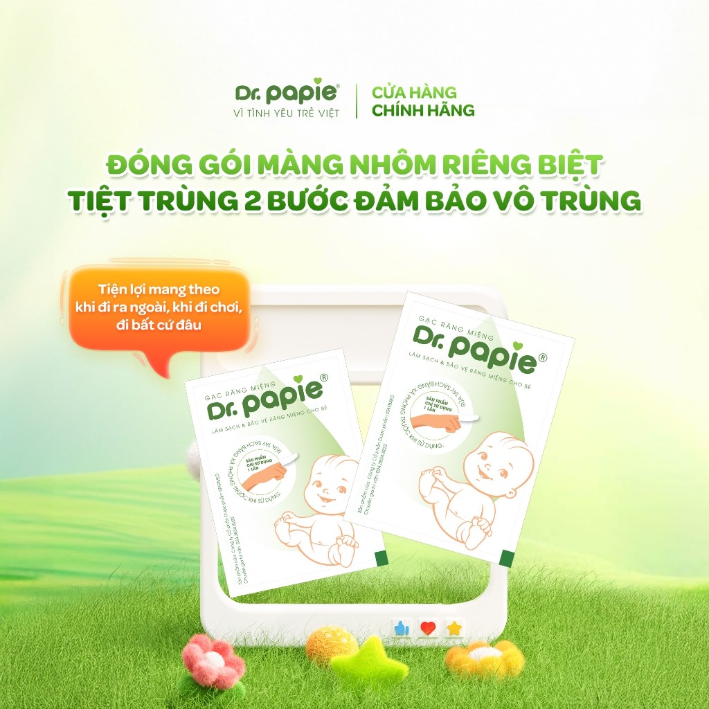 Gạc Rơ Lưỡi Dr.Papie Tiêu Chuẩn 5SAO, Làm Sạch Răng, Lưỡi, Nướu và Khoang Miệng Cho Bé - 30Gói/Hộp Dành cho Trẻ Sơ Sinh Trở Lên   TIÊU CHUẨN 5SAO CHO GẠC RĂNG MIỆNG: Công