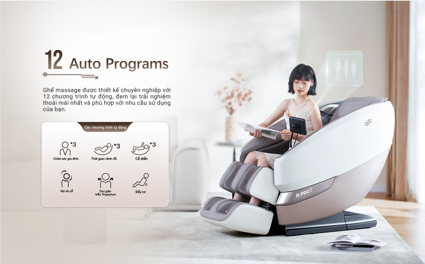 Công nghệ massage khí nén với 7 túi khí được điều khiển độc lập Mô phỏng chính xác các tư thế Yoga tác động đến phần cơ lưng hông vai 6 Trương trình được lập