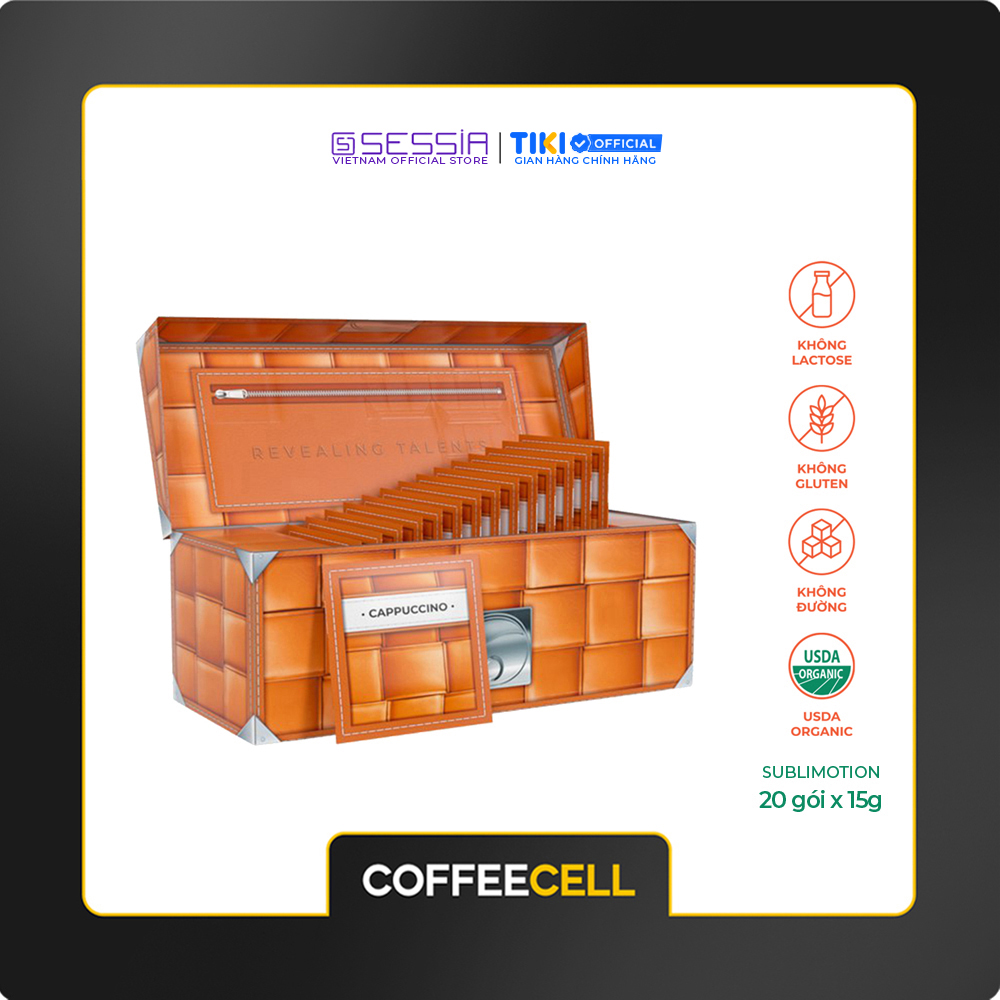 ✨[MUA 1 TẶNG 5] Cà Phê Cappuccino Vị Hạt Phỉ Với Nhân Sâm Trắng Thượng Hạng COFFEECELL (20 gói x 15g) - Mùi thơm nhẹ nhàng, Vị cà phê đậm đà, Bọt sữa bồng bềnh - Hàng Chính Hãng