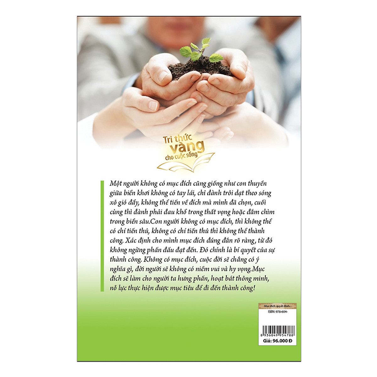 Một người không có mục đích cũng giống như con thuyền giữa biển khơi không có tay lái, chỉ đành trôi dạt theo sóng xô gió đẩy, không thể tiến về đích mà mình đã chọn, cuối cùng thì đành phải đau khổ trong thất vọng hoặc đắm chìm trong biển sâu. Con người không có mục đích, thì không thể có chí tiến thủ, không có chí tiến thủ thì không thể thành công. Xác định cho mình mục đích đúng đắn rõ ràng, từ đó không ngừng phấn đấu. Đó chính là bí quyết của sự thành công. Không có mục đích, cuộc đời sẽ chẳng có ý nghĩa gì, đời người sẽ không có niềm vui và hy vọng. Mục đích sẽ làm cho người ta hưng phấn, hoạt bát thông minh, nỗ lực thực hiện được mục tiêu để đi đến thành công!