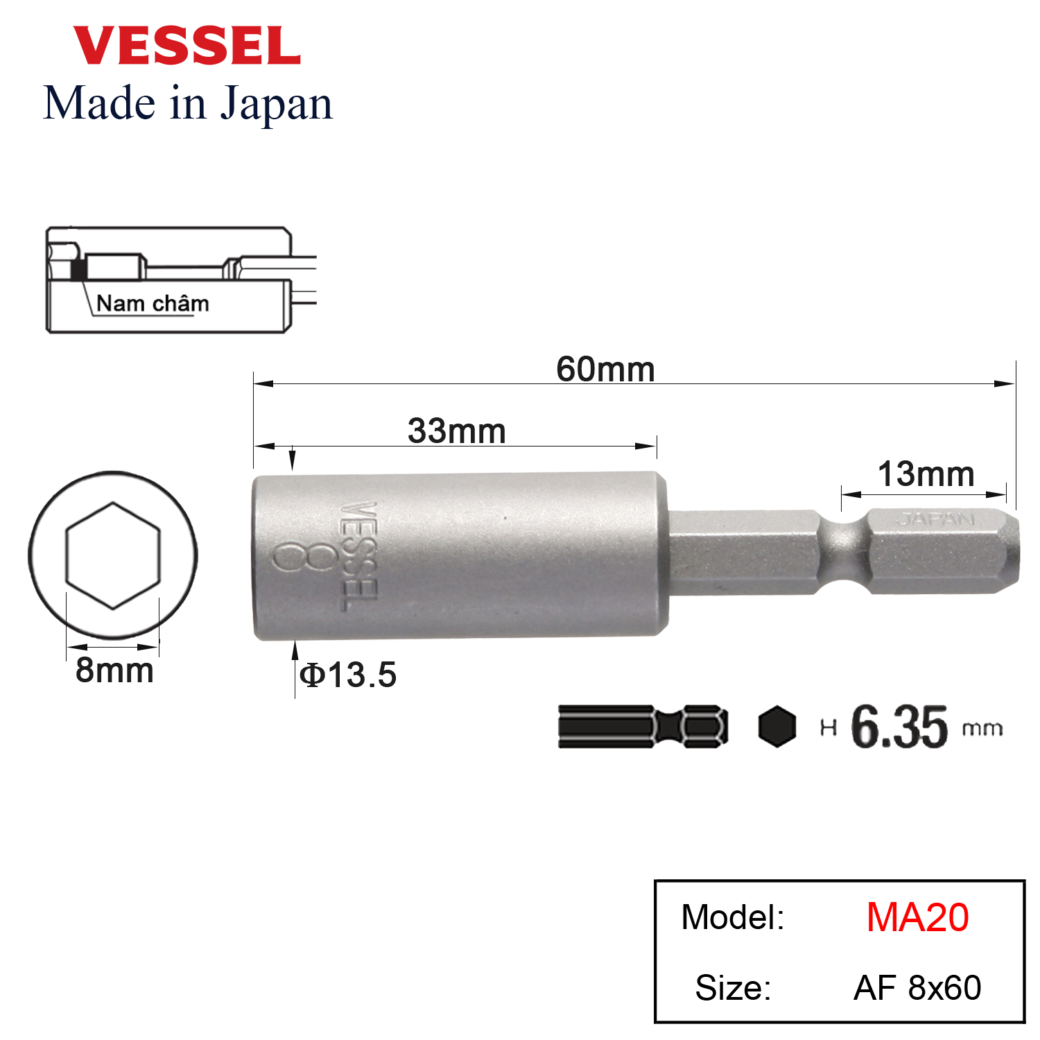 ✨Mũi vặn bu long (có nam châm) M - A20, Vessel (Nhật Bản)