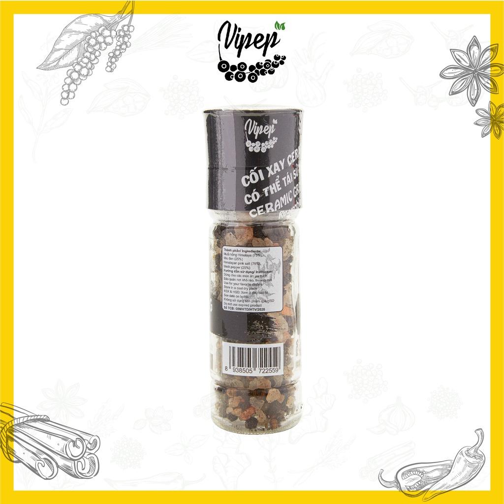 ✨Muối Hồng Himalaya Tiêu Đen Tự Nhiên Cối Xay Vipep Hũ Thủy Tinh 90g
