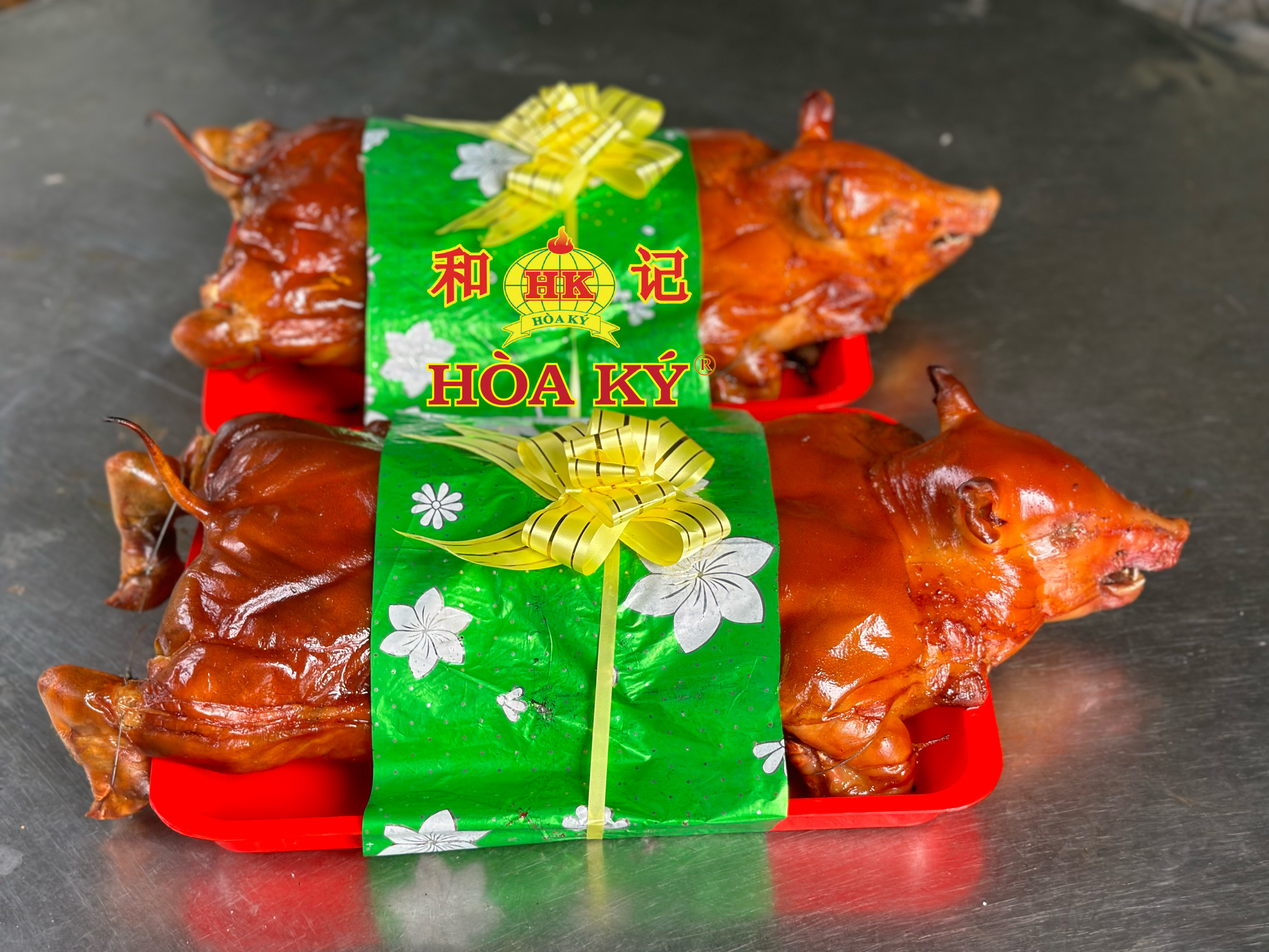 Quay da bóng giòn màu đẹp thì lấy Bột nổ pha với Giấm Đa Dụng Hòa Ký ; xâm đều bề mặt da, rồi quét đều vùng da cần nổ giòn, để 1– 2 tiếng hong gió ( tùy miếng thịt nhỏ lớn), sau đó quay nướng.