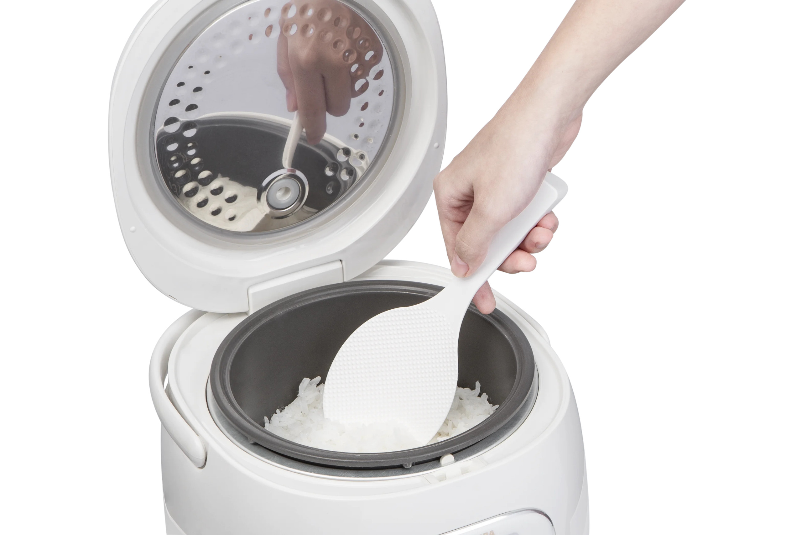 Dễ dàng loại bỏ thực phẩm như bánh cuốn nhờ đường cong nông Chất lỏng dư thừa dễ dàng thoát qua các khẩu độ lớn Một chiếc muôi hớt bọt là thiết bị nhà bếp