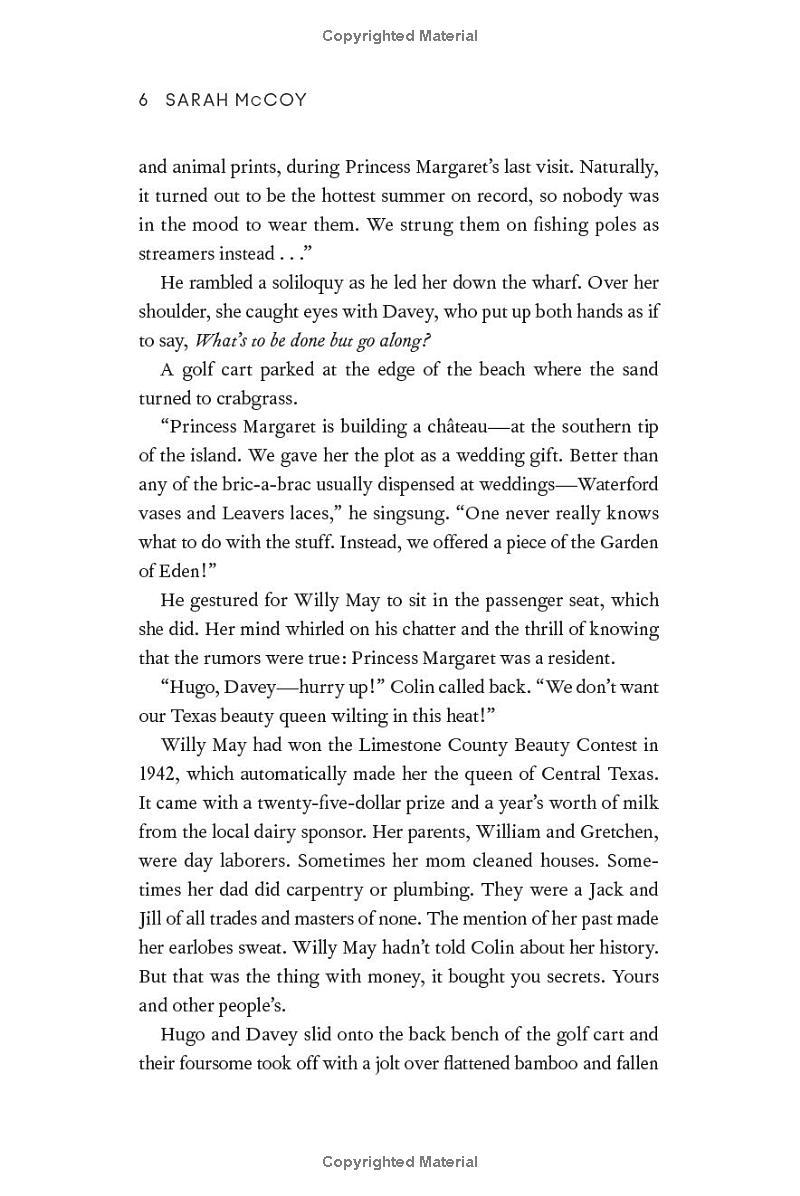 From bestselling author Sarah McCoy, a sun-splashed romp with a rich divorcée and her two wayward daughters in 1970s Mustique, the world’s most exclusive private island, where Princess Margaret and Mick Jagger were regulars and scandals stayed hidden from the press.