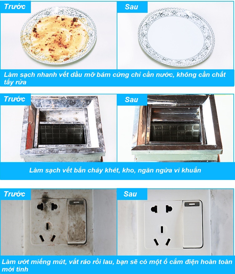 - Không cần bất kỳ chất tẩy rửa nào, chỉ cần làm ướt với nước, mút thần kỳ SAMI lau chùi ma thuật làm mọi vết cứng đầu bị quét sạch dễ dàng.