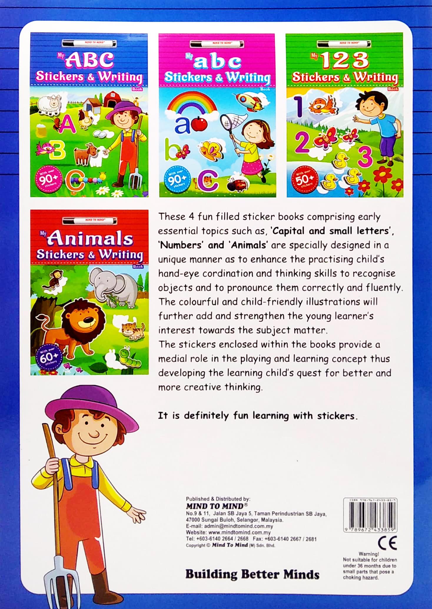 The stickers enclosed within the books provide a medial role in the playing and learning concept thus developing the learning child's quest for better and more creative thinking.