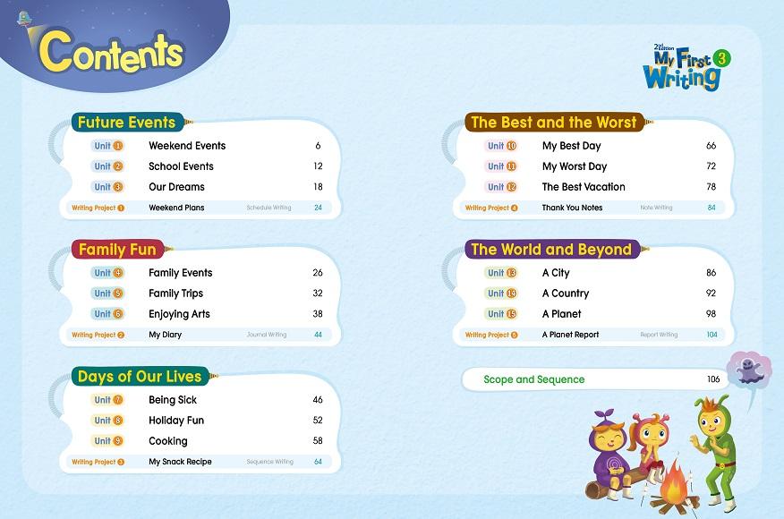 My First Writing is a fun and easy writing series for young EFL beginners designed to help them develop sentence building skills. Throughout the series, students will learn to organize their ideas and practice writing sentences within a context of fun and interesting topics. They will also expand their writing tools such as vocabulary and grammar knowledge through fun activities. Upon finishing the My First Writing series, students will be equipped with basic writing skills for paragraph and essay writing.