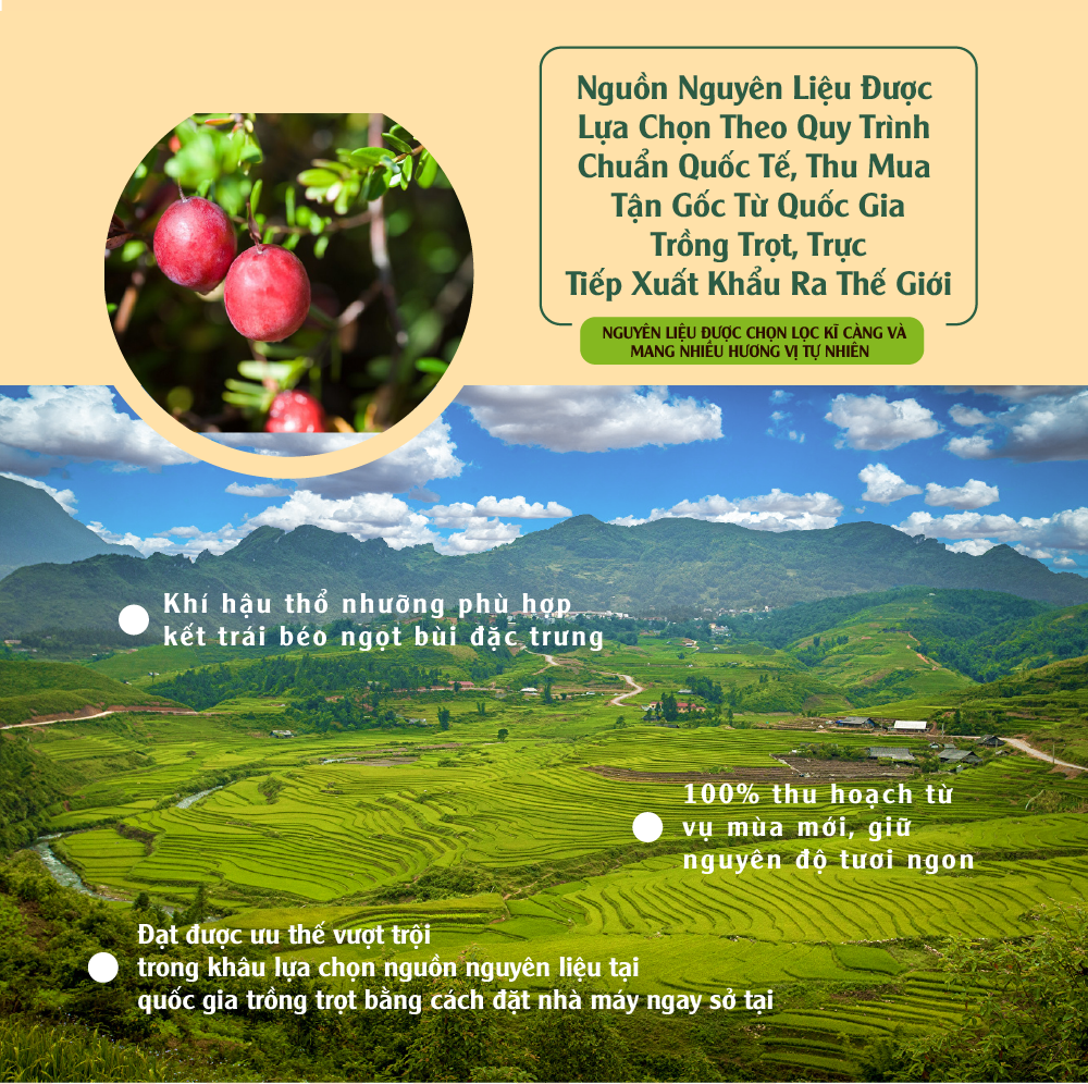 Đặc điểm nổi bậc: Nguyên liệu chính là thanh long tươi. Thanh long được sơ chế và sấy bằng công nghệ hiện đại, khép kín, đảm bảo đạt chuẩn an toàn vệ sinh thực phẩm.