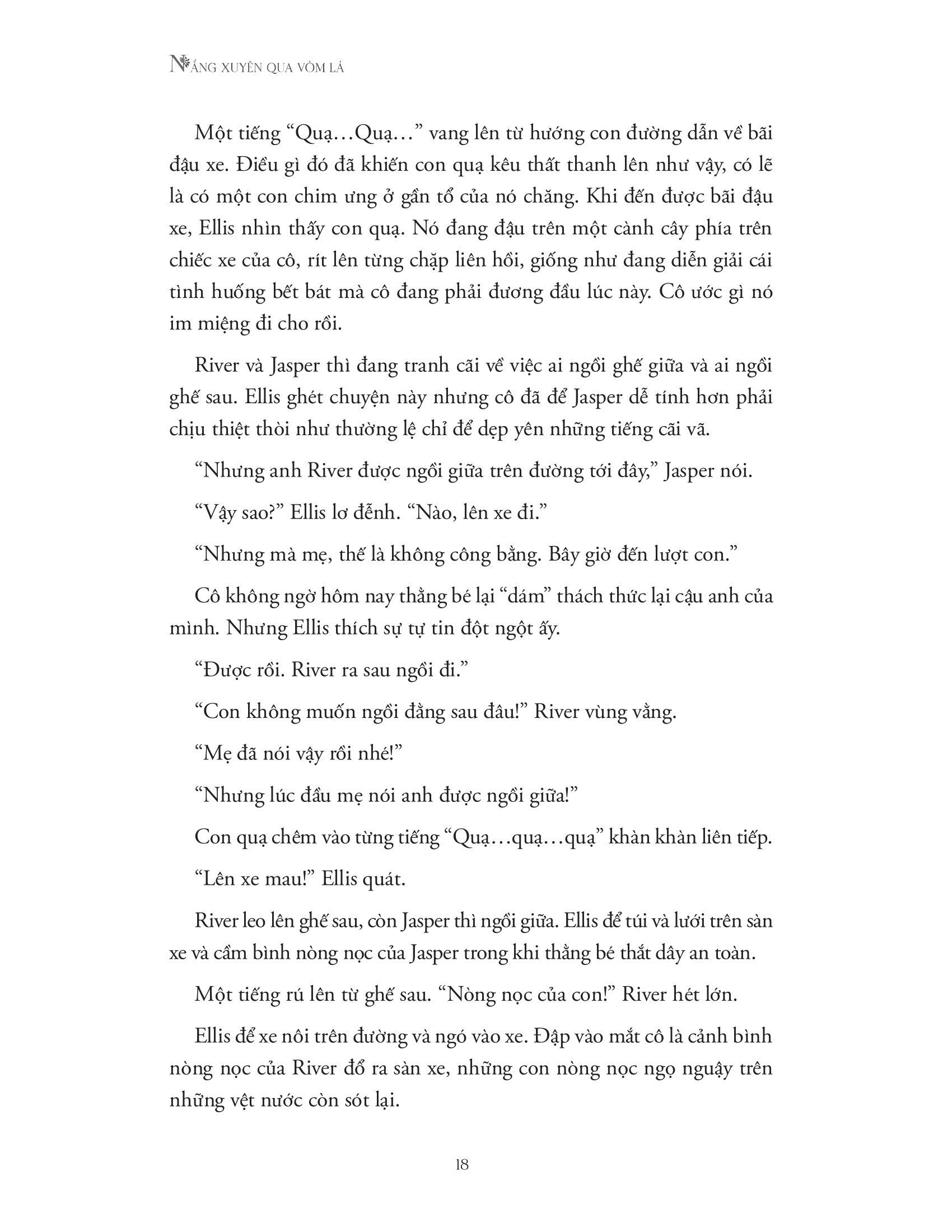Sau Nơi khu rừng chạm tới những vì sao, Glendy Vanderah (tác giả sách bán chạy theo bình chọn của Wall Street Journal) đã tiếp nối những cảm xúc thứ tha và chữa lành ấy bằng một cuốn tiểu thuyết tuyệt diệu về tình yêu, sự mất mát và hành trình khám phá bản thân, The light through the leaves.
