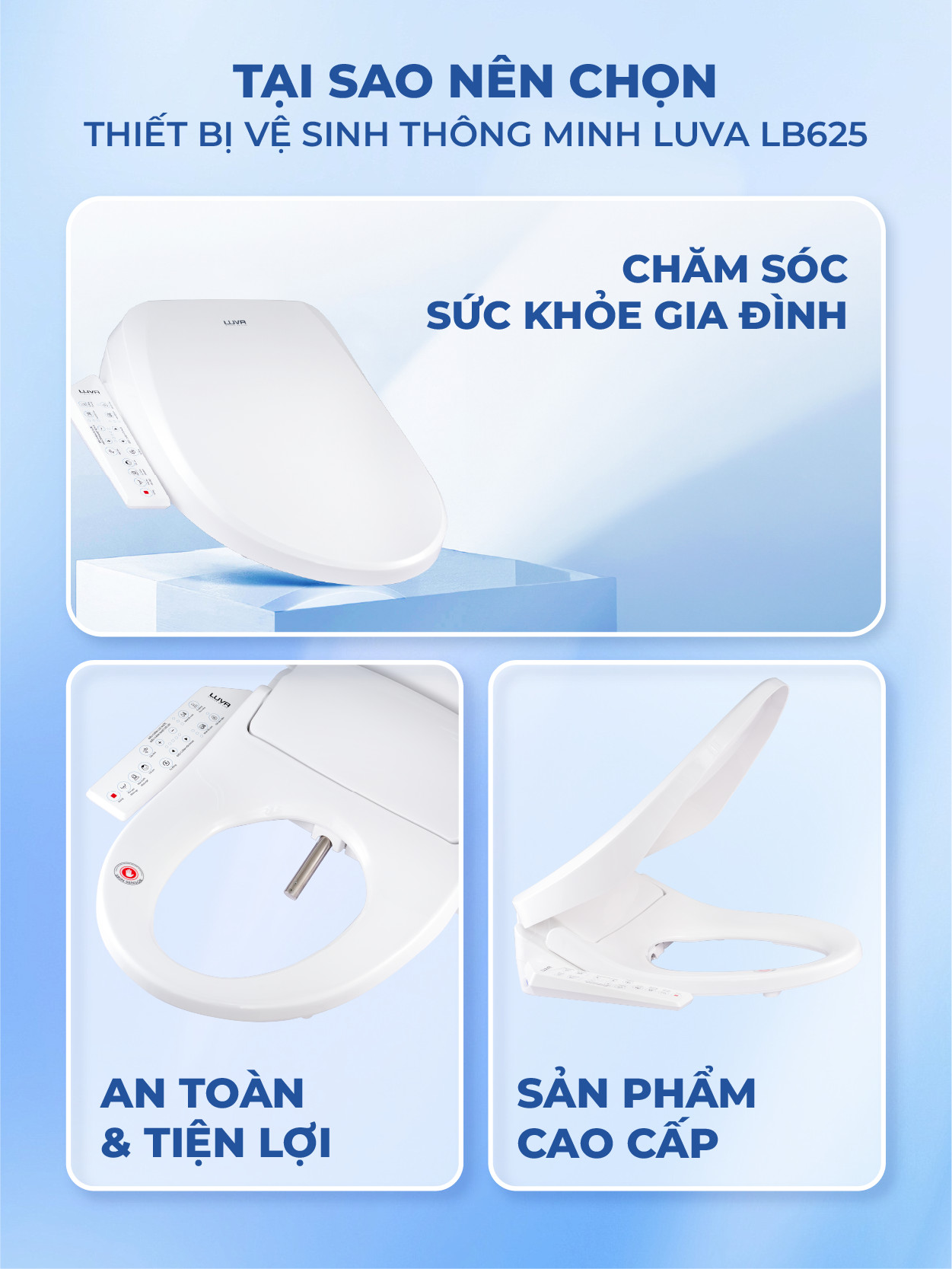 Nắp bồn cầu điện tử LUVA Bidet LB625 (bảng điều khiển cảm ứng Tiếng Việt)