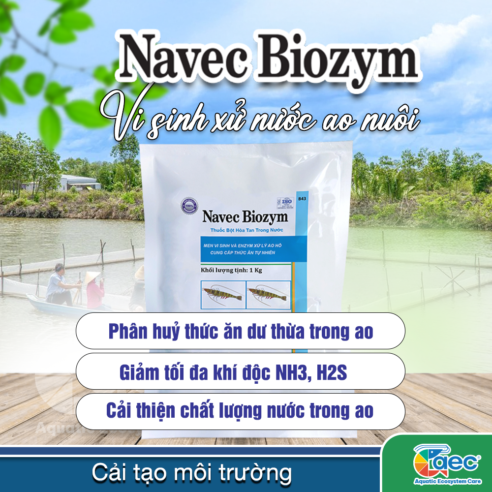 - Tiêu diệt vi khuẩn Vibrio parahaemolyticusgây hại cho tôm nuôi bằng các hoạt chất diệt khuẩn đặc hiệu. - Chủ động kiểm soát mật độ vi khuẩn gây bệnh từ các loài Vibrio (parahaemolyticus, alginolyticus, vunificus, harveji)