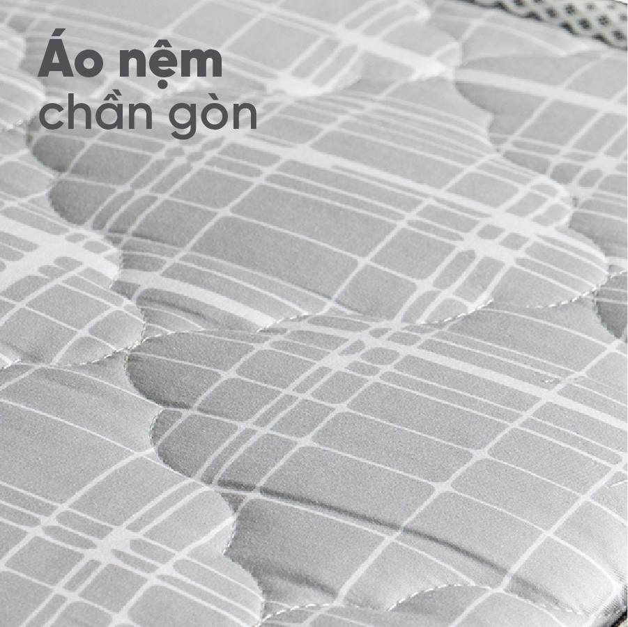 Chất liệu áo bọc đệm: Lớp vỏ đệm Nano gồm 4 lớp được thiết kế đặc biệt trên công nghệ Nano Bạc gồm các lớp: + Vải gấm CPS cao cấp chống cháy + Mút