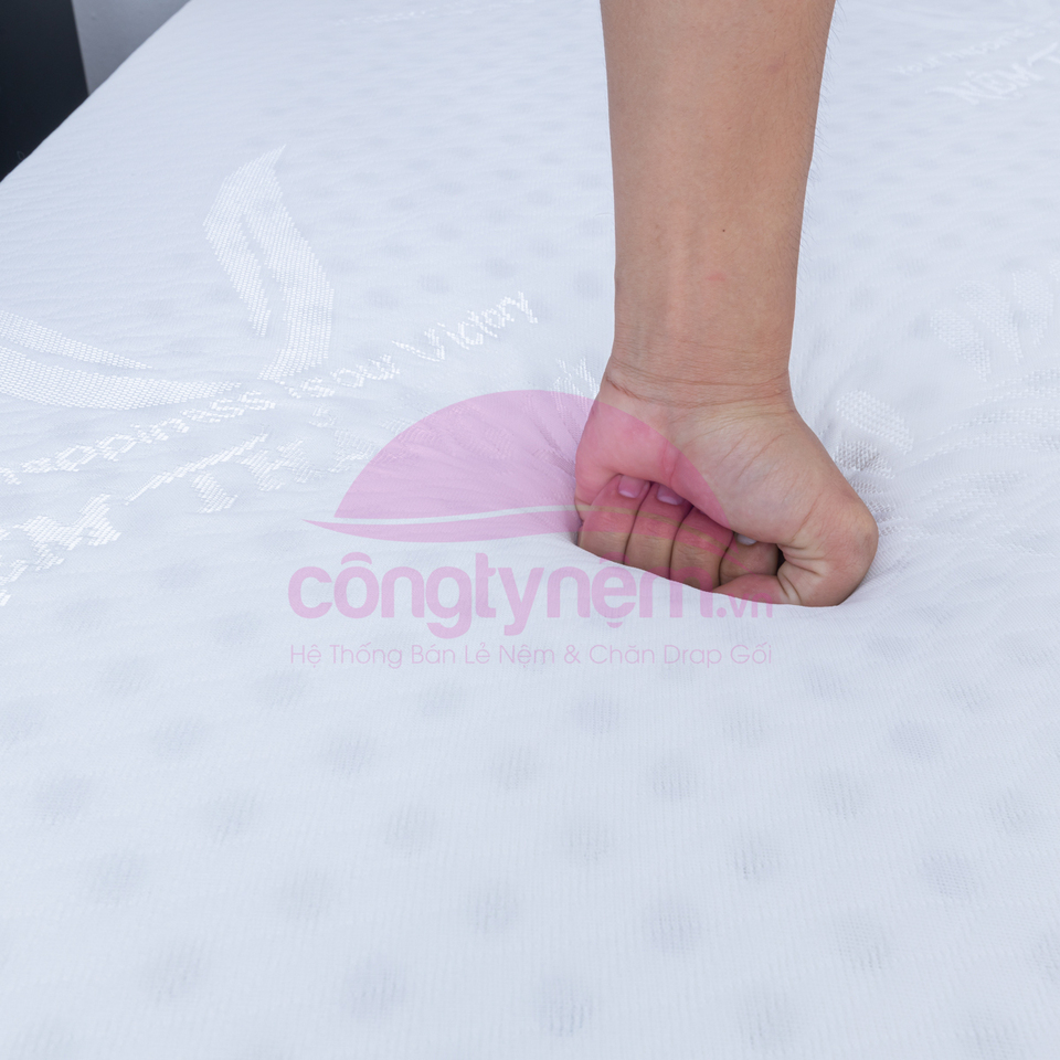- 100% cao su thiên nhiên. - Áo nệm làm từ chất liệu vải gấm xốp Kháng cháy – Lô hội nhập khẩu từ vương quốc Bỉ. - Bề mặt nệm được phân bổ trọng