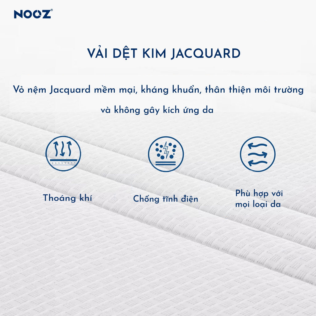 Mua tại TiktokNgủ ngon và sâu hơn với sự nâng đỡ và công nghệ ngăn cách chuyển động từ Nệm Foam Hybrid Nooz Home Goods Việc dành 8 tiếng mỗi ngày để ngủ trên một chiếc nệm quá cứng hoặc quá mỏng sẽ làm bạn cảm thấy mệt mỏi vào ngày hôm sau. Với chất liệu High Density Foam và Convoluted Foam êm ái, nệm Foam Hybrid Nooz Home Goods có khả năng nâng đỡ đầu và toàn bộ cơ thể theo đường cong tự nhiên của cột sống. Kết hợp cùng lò xo túi độc lập (Pocket Coil) giúp ngăn cách chuyển động, giảm tiếng ồn, giúp bạn tận hưởng giấc ngủ một cách trọn vẹn nhất mà không bị ảnh hưởng bởi người bên cạnh. Chi tiết sản phẩm: Bộ sản phẩm bao gồm: Lò xo túi độc lập, Convulated Foam, High Density Foam và vỏ bọc ngoài vải dệt kim Jacquard Quy cách đóng gói: Đóng thùng carton và bọc PE