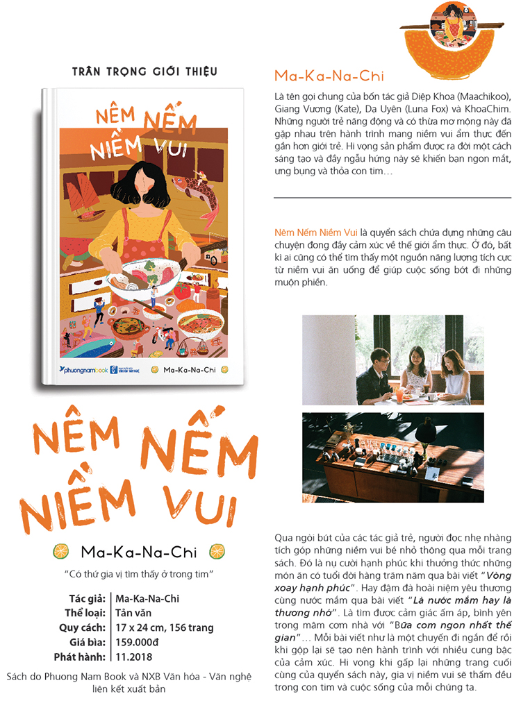 Bạn sẽ không tìm thấy trong quyển sách này một công thức nấu ăn hoàn chỉnh, cũng chẳng có "review" quán xá với những đoạn mô tả quen thuộc. Bởi Nêm Nếm Niềm Vui là nơi mà ẩm thực và con người kết nối bằng cảm xúc và tình cảm, là sự giao thoa mà bất kỳ ai cũng đều có những câu chuyện riêng để kể. Không có chuẩn mực nào để đánh giá cảm xúc, bởi đôi khi chúng ta ăn không vì ngon mà vì cái tình trong đó nữa.