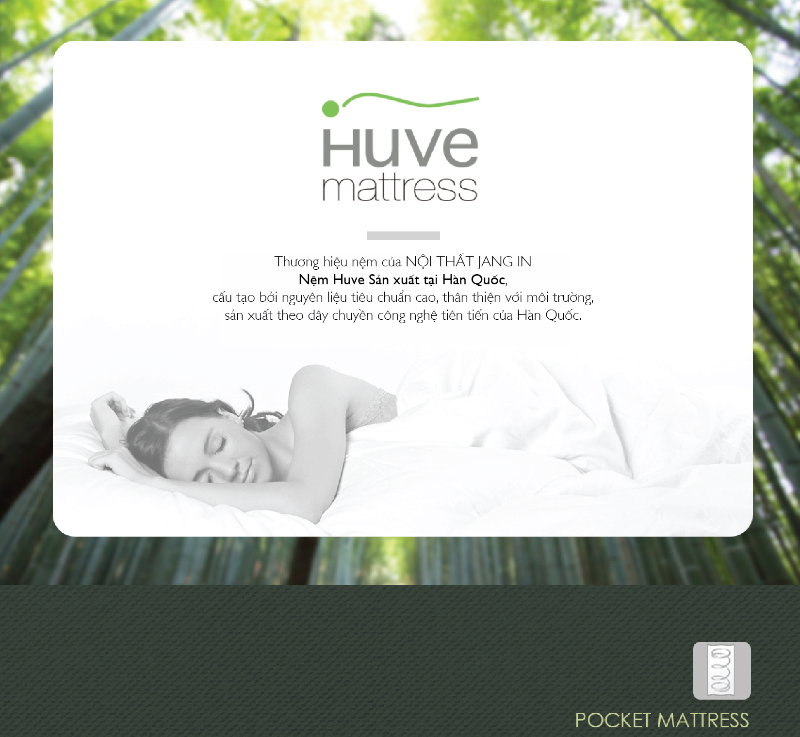 Nệm HUVE - BERN 1.8m nhập khẩu Hàn Quốc THÔNG TIN SẢN PHẨM - Thương hiệu: JANG IN - Xuất xứ: Hàn Quốc - Bộ sưu tập: BERN - Kích cỡ: 1800 x 2000 x