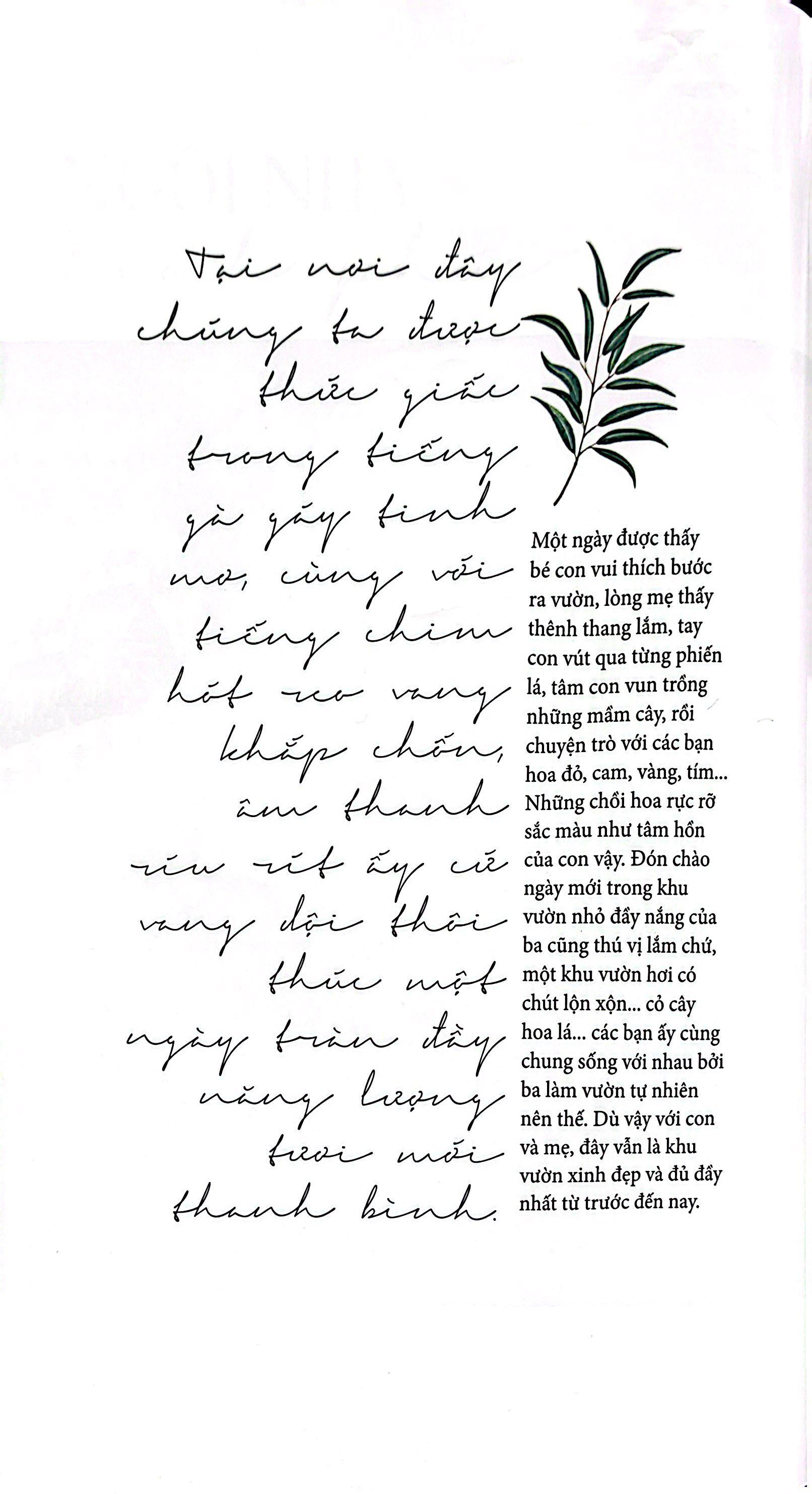 Cuốn sách đưa ra những công thức các món ăn đậm chất Việt Nam từ khắp các vùng miền theo phong cách thực dưỡng. Đồng thời cũng là lời tâm sự của một người phụ nữ Việt, một người mẹ, một người vợ với mong muốn đem đến những bữa ăn an lành và bổ dưỡng cho gia đình mình. Từ đó cuốn sách truyền cảm hứng cho chúng ta về việc sống thuận tự nhiên, yêu thương và trân quý những điều giản dị thường ngày để có thể an lành từ bữa ăn cho đến đời sống.
